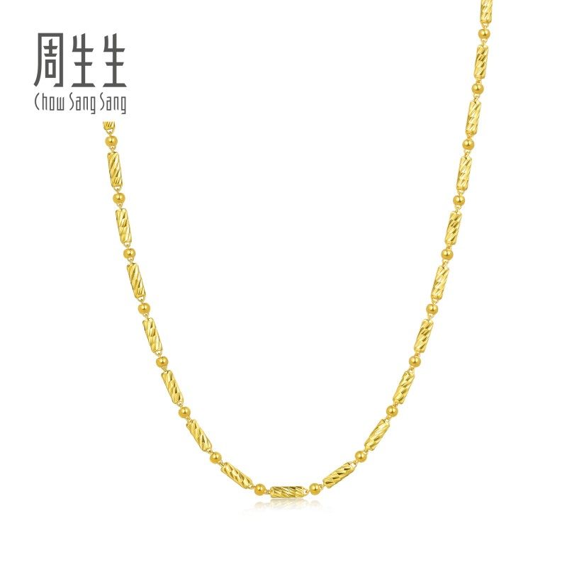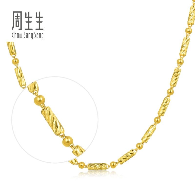 周生生足金生生有礼1934系列爆闪圆筒金珠素链黄金项链96187N计价