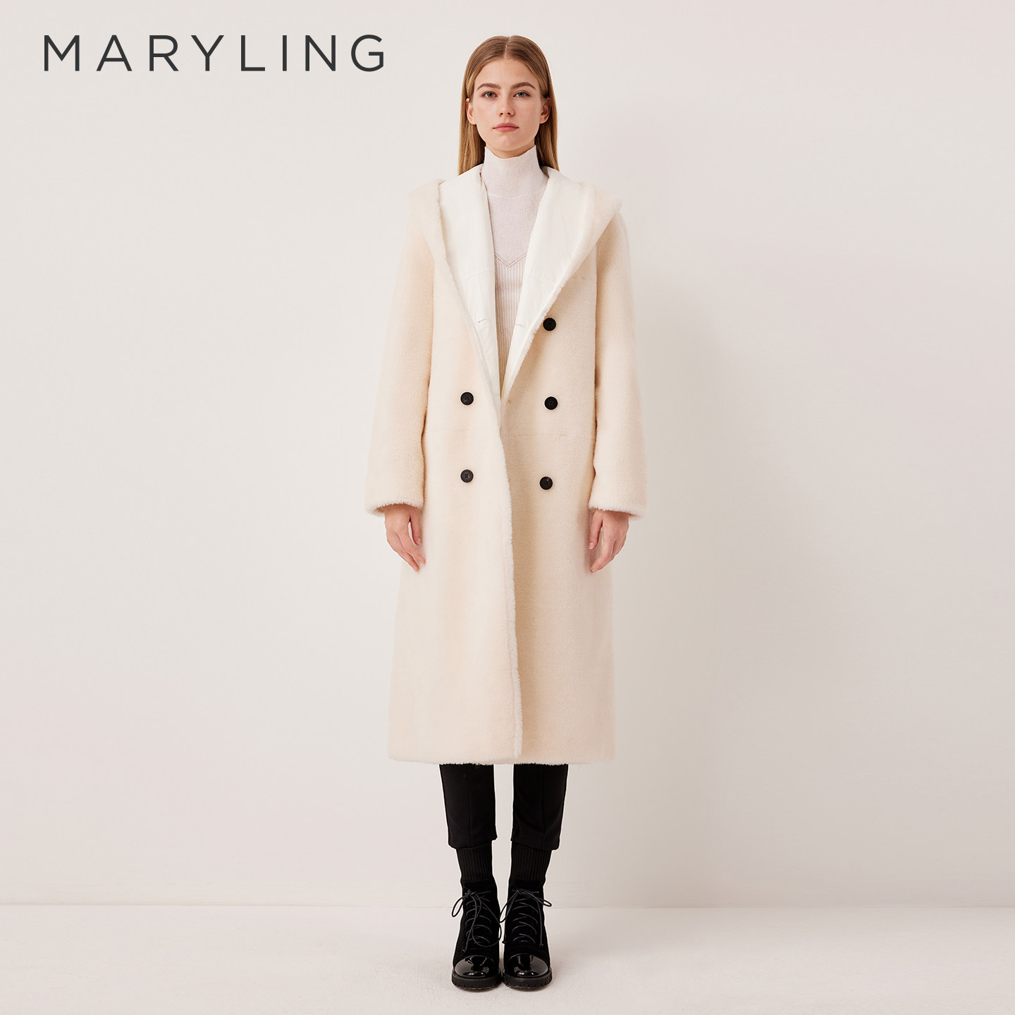 MARYLING玛俪琳2025冬季新品高级感米白色皮毛一体大衣A1FHW9S040