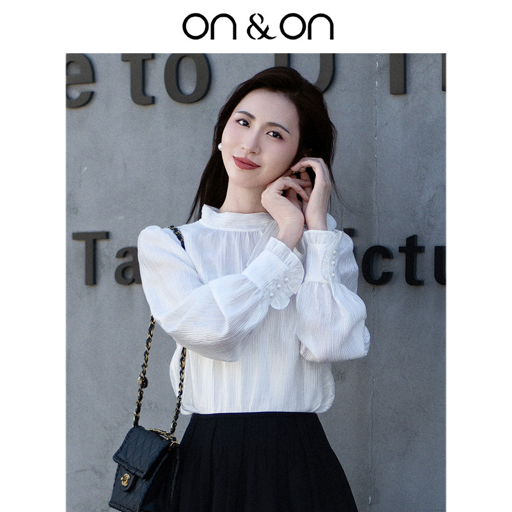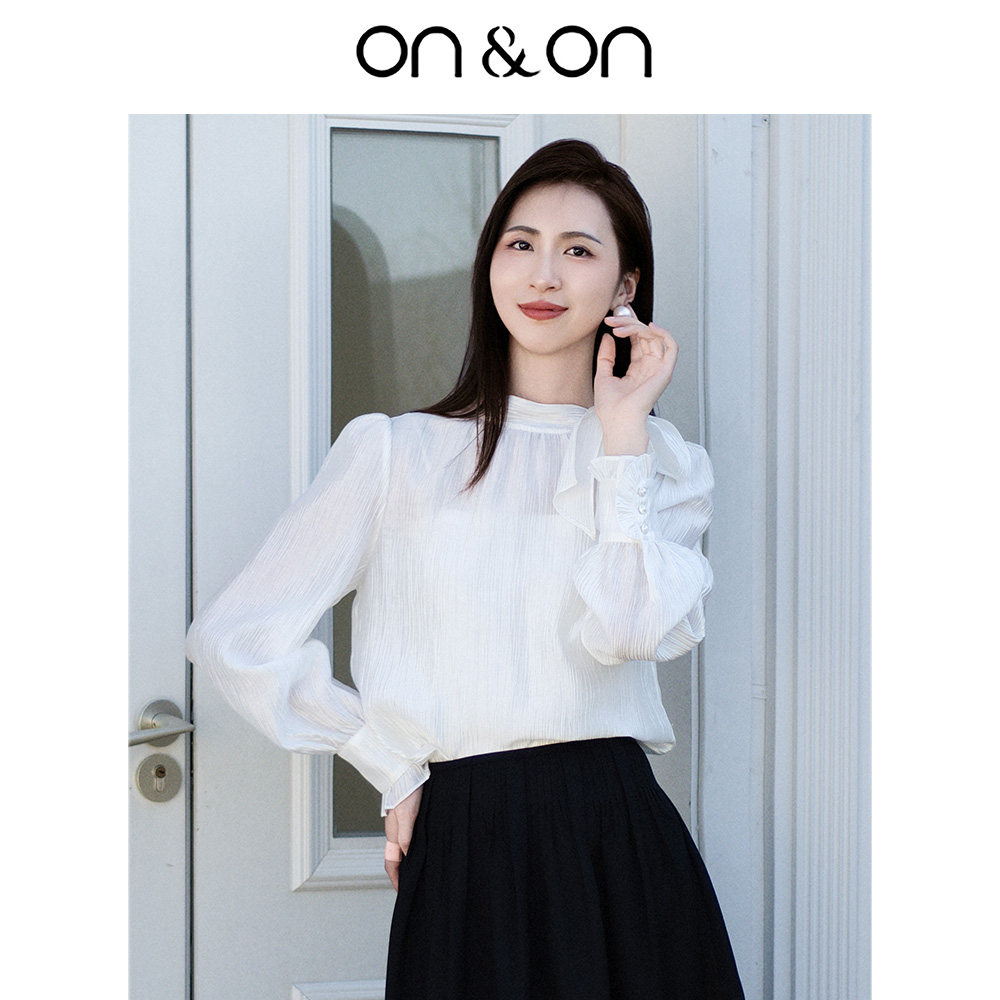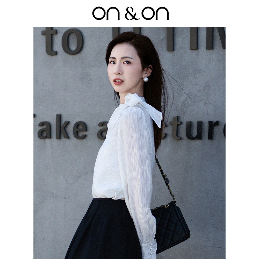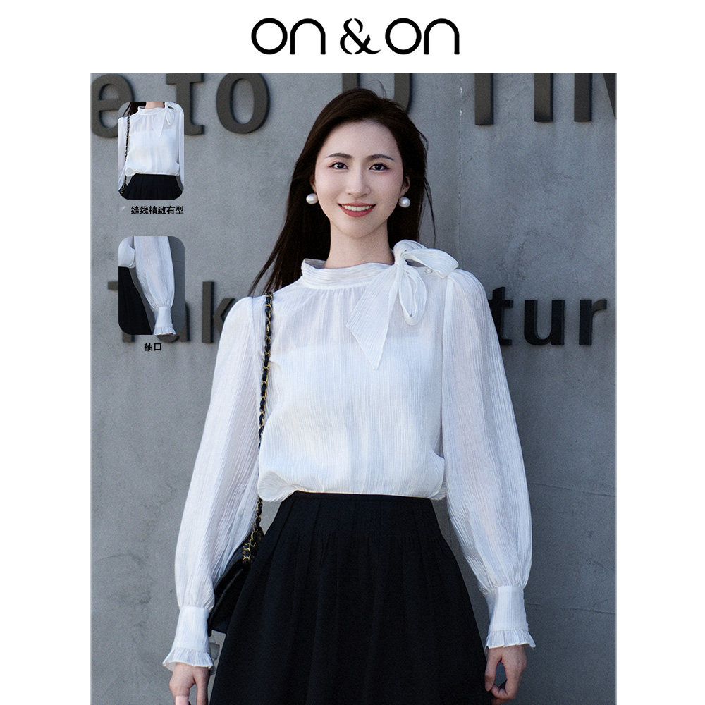 ON&ON/安乃安2025冬季韩系气质高级感系带蝴蝶结流光风衬衫女