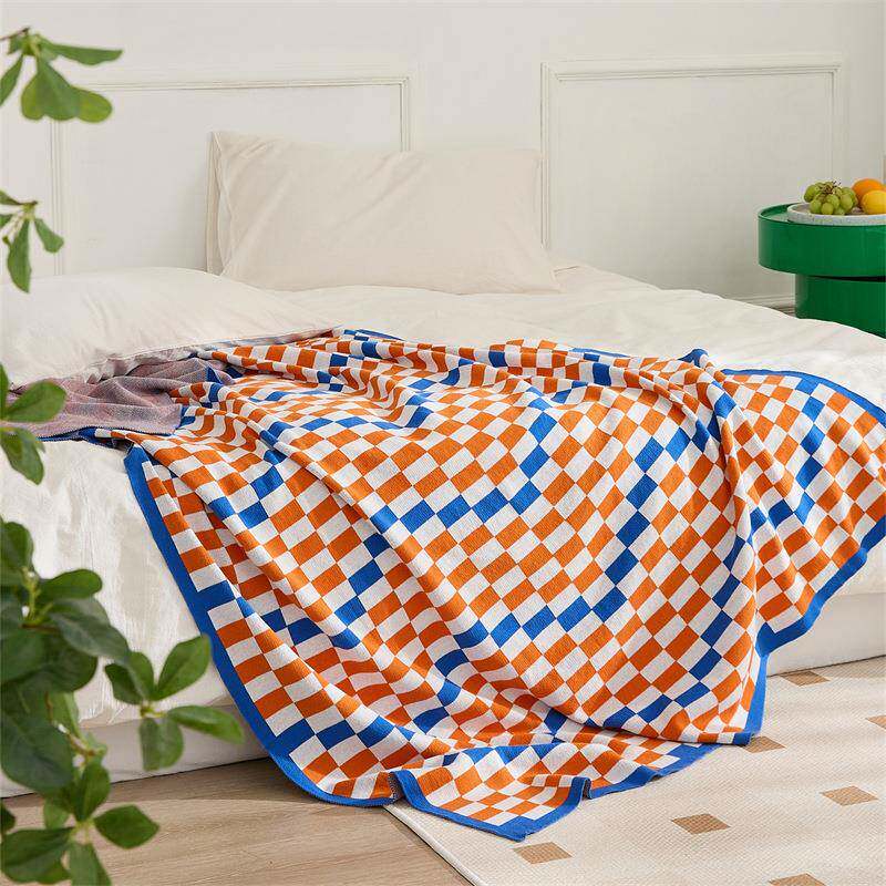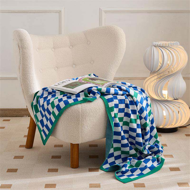 朗高A类棉棋盘格几何针织线毯盖毯软装搭配毯苏逸