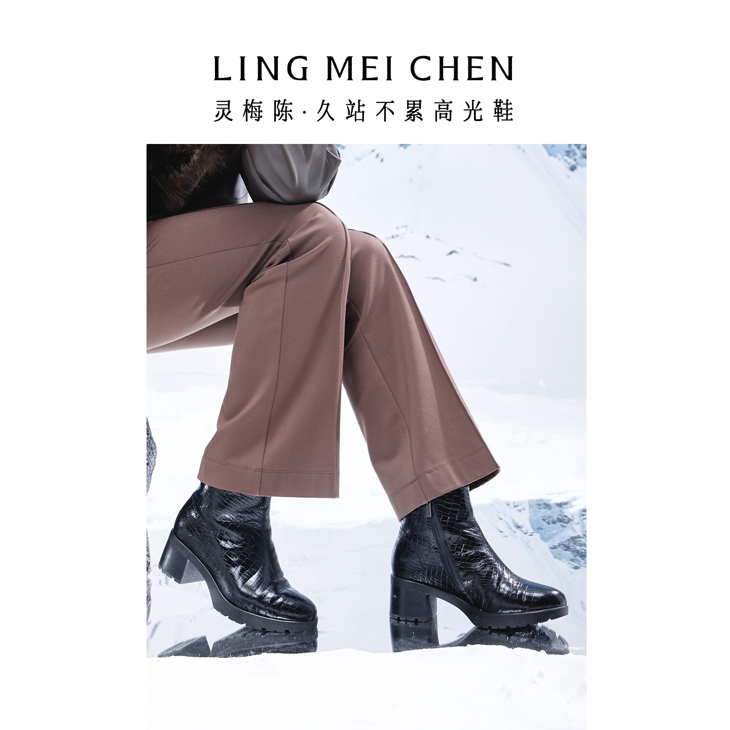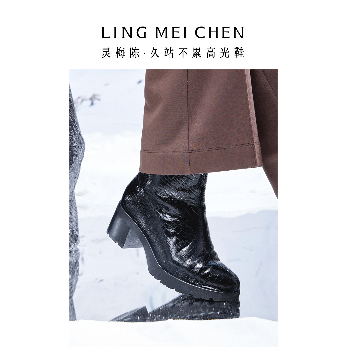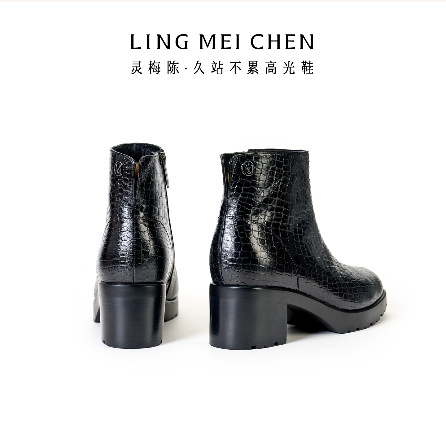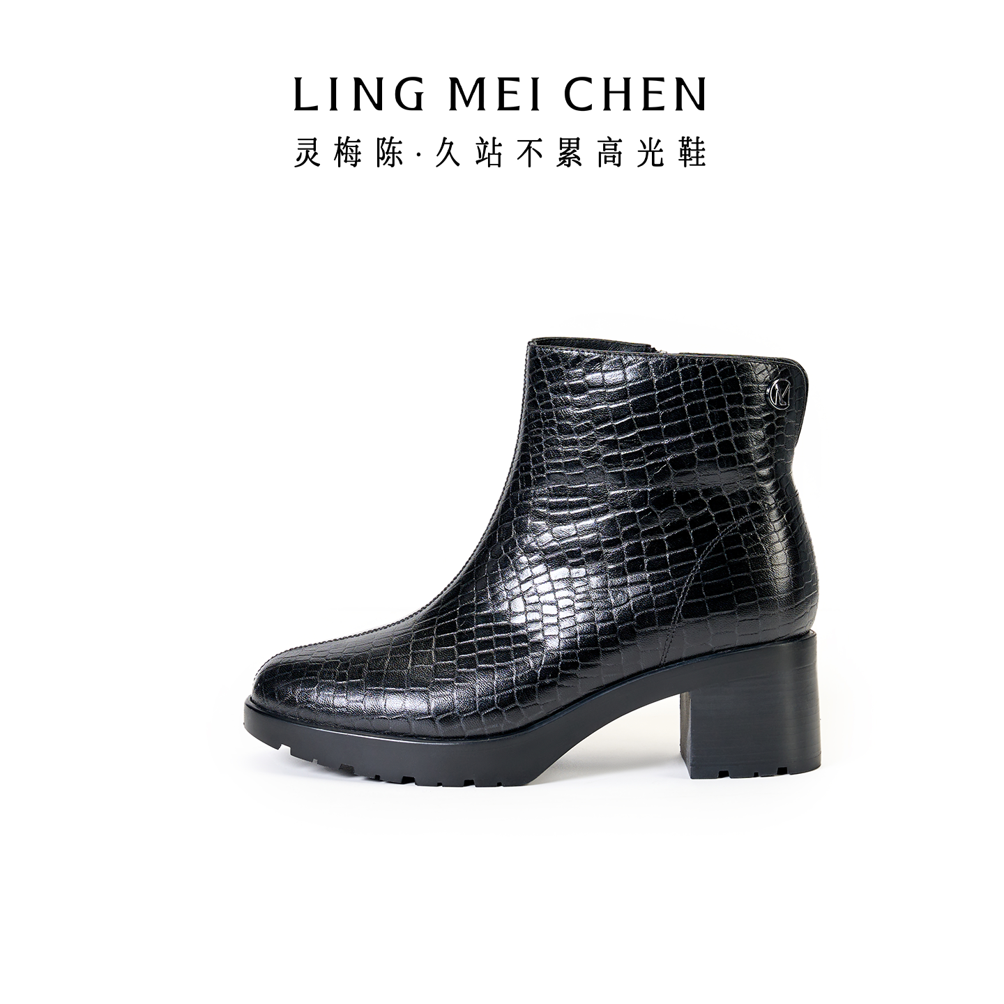 灵梅陈高光鞋加绒皮鞋女黑色厚底女靴真皮短靴高跟靴增高靴子女鞋