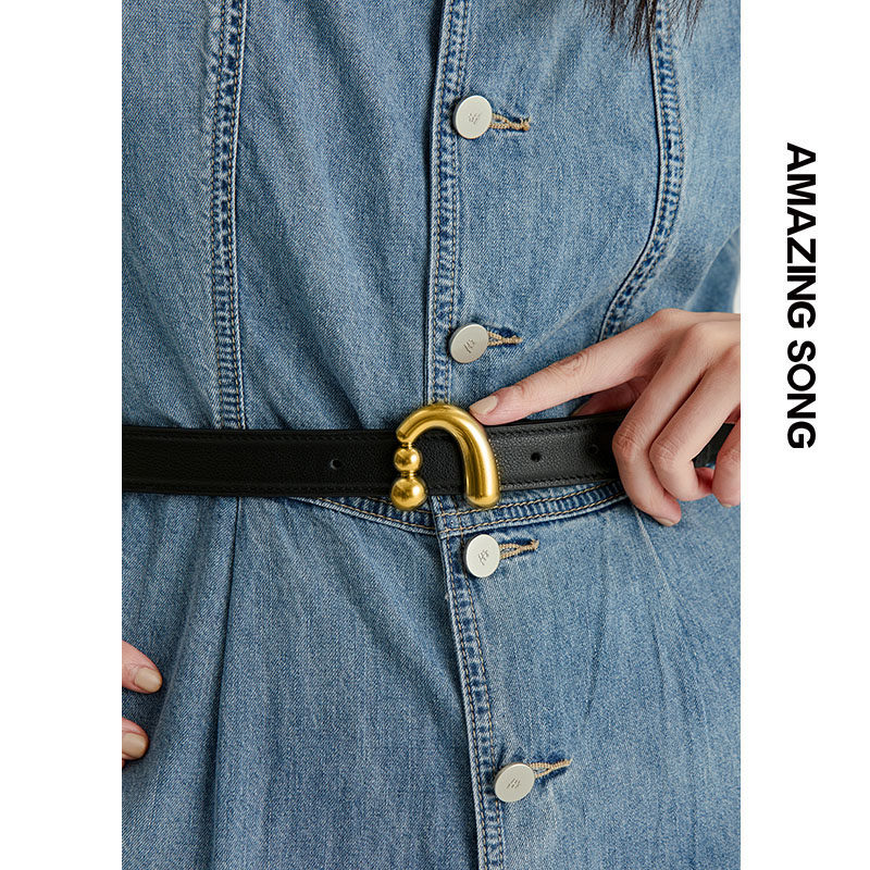 【七七酱直播间】Amazing song乙颂头层牛皮A字钉扣可调腰带皮带