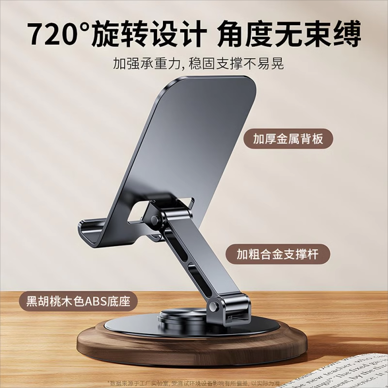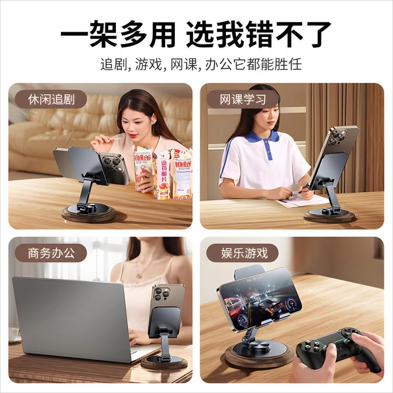 2025新款手机支架桌面懒人平板电脑支撑架可旋转折叠手机架ipad支撑架子金属旋转手机架支架便携胡桃木纹底座