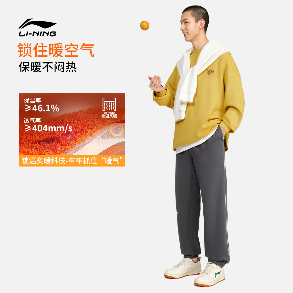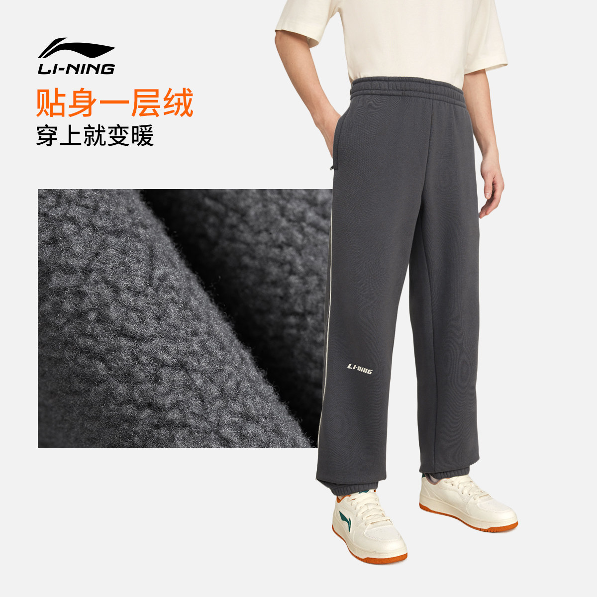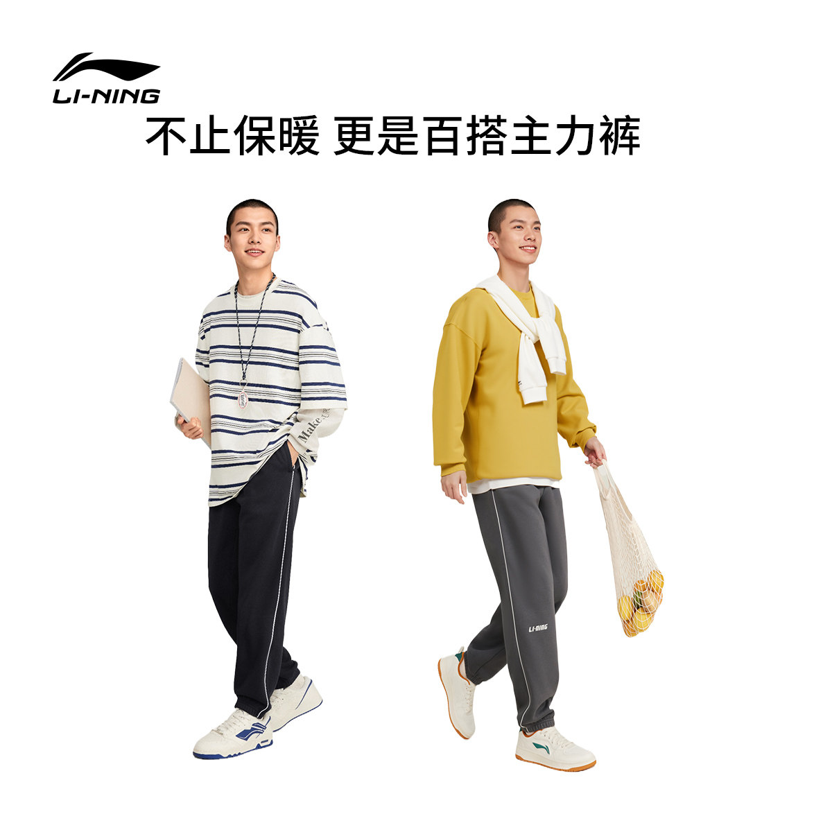 李宁热力裤丨卫裤新款宽松男士冬季校服裤子加绒休闲裤束脚运动裤
