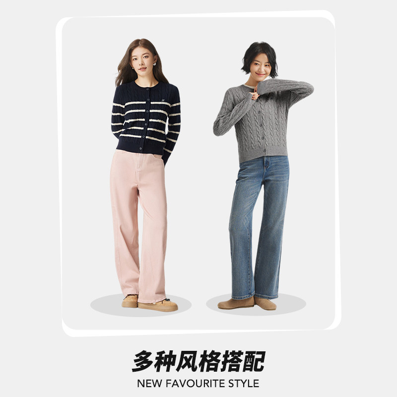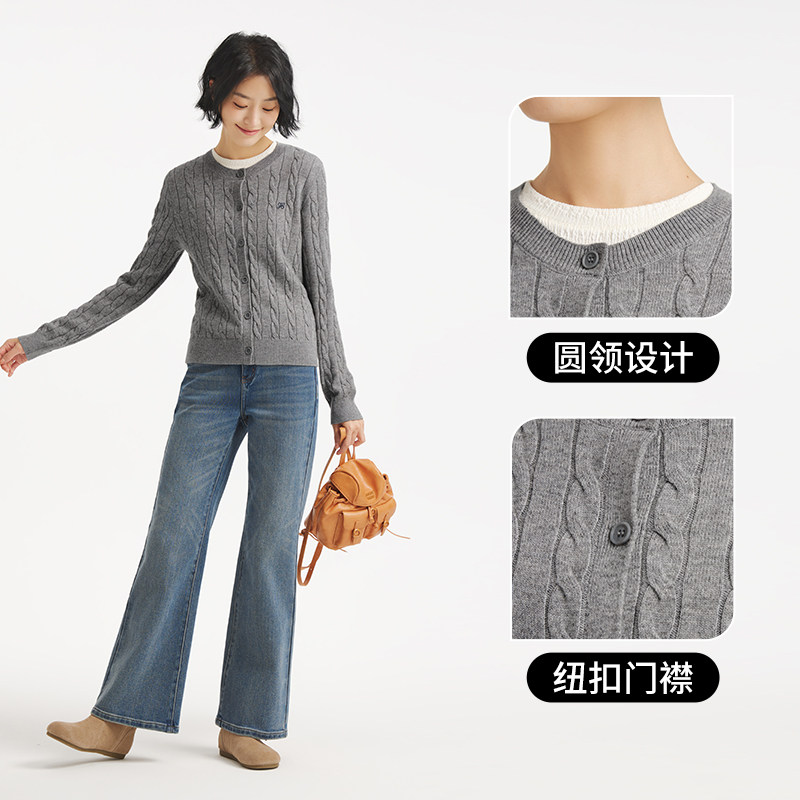 热风女士开衫针织衫2025年冬季新款绞花老钱风毛衣
