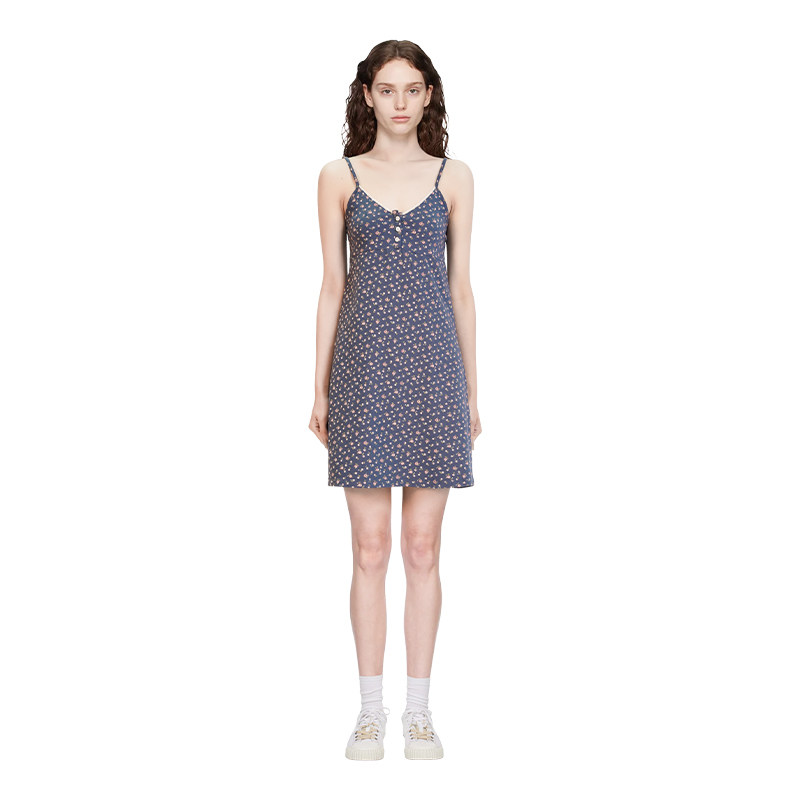 BM连衣裙蓝色碎花吊带裙2026新款女夏季初秋气海边质超好看连衣裙