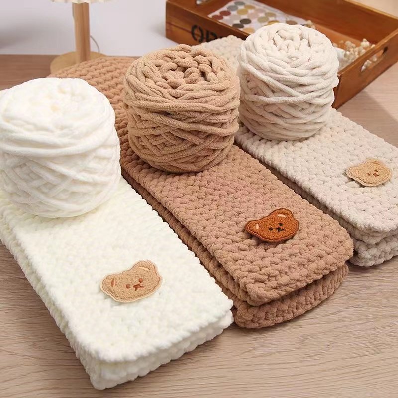 小熊围巾自织diy毛线材料包手工编织围巾冰条粗毛线 送男女朋友