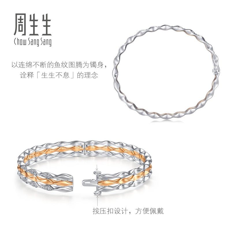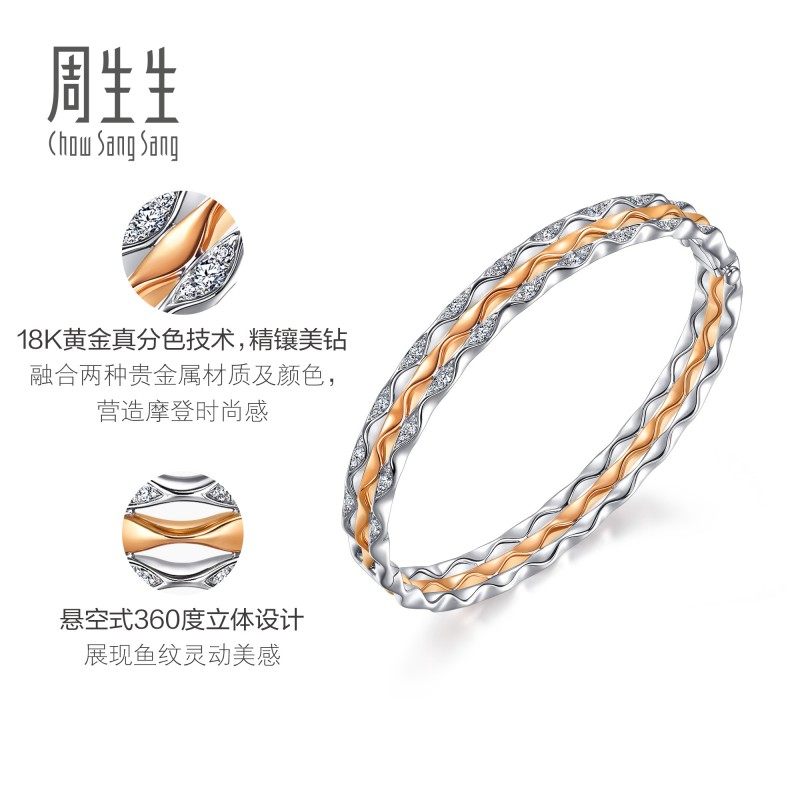 周生生18K白红分色黄金YuYu系列钻石手镯95326K预订