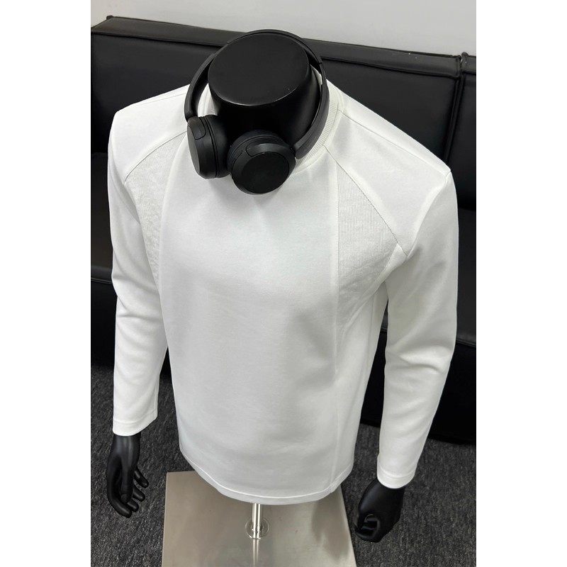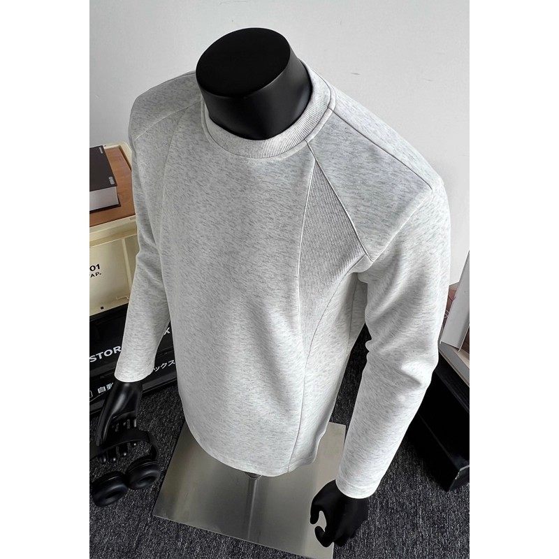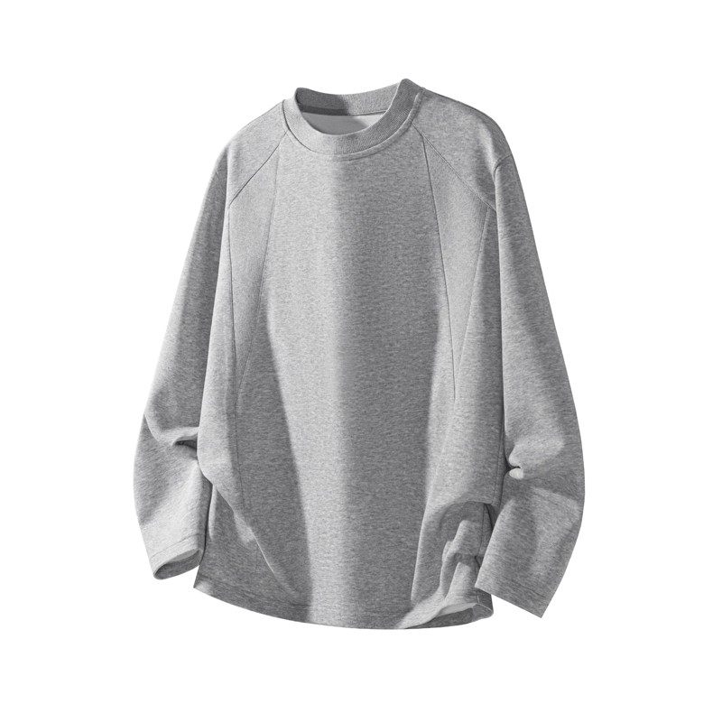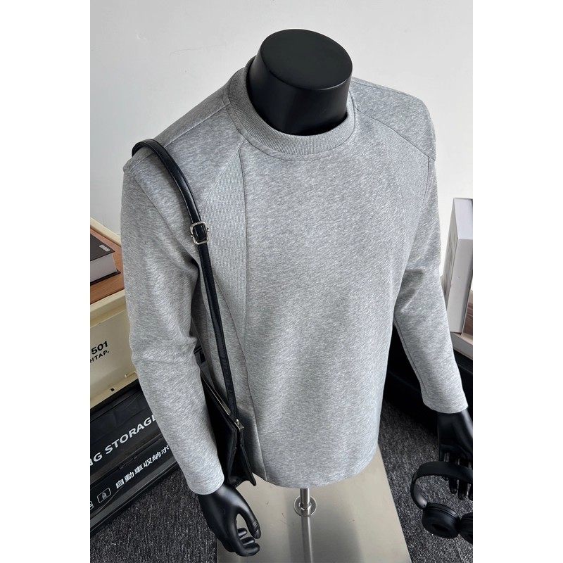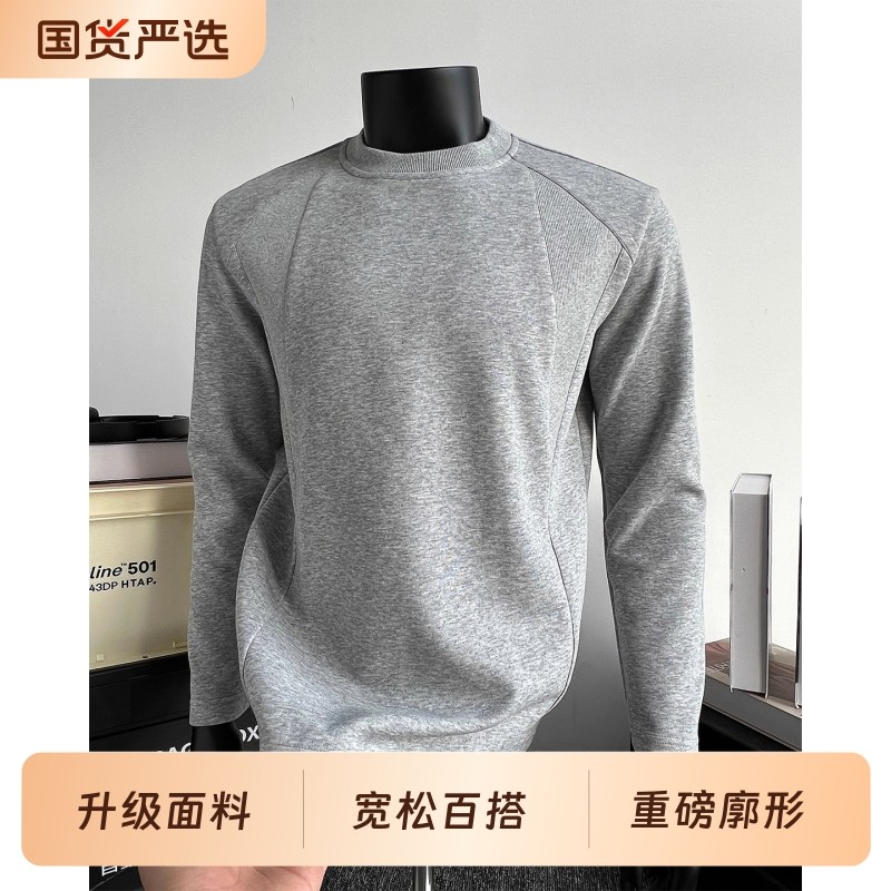 拼接垫肩长袖T恤男秋冬灰色无帽圆领卫衣宽松休闲内搭打底衫上衣