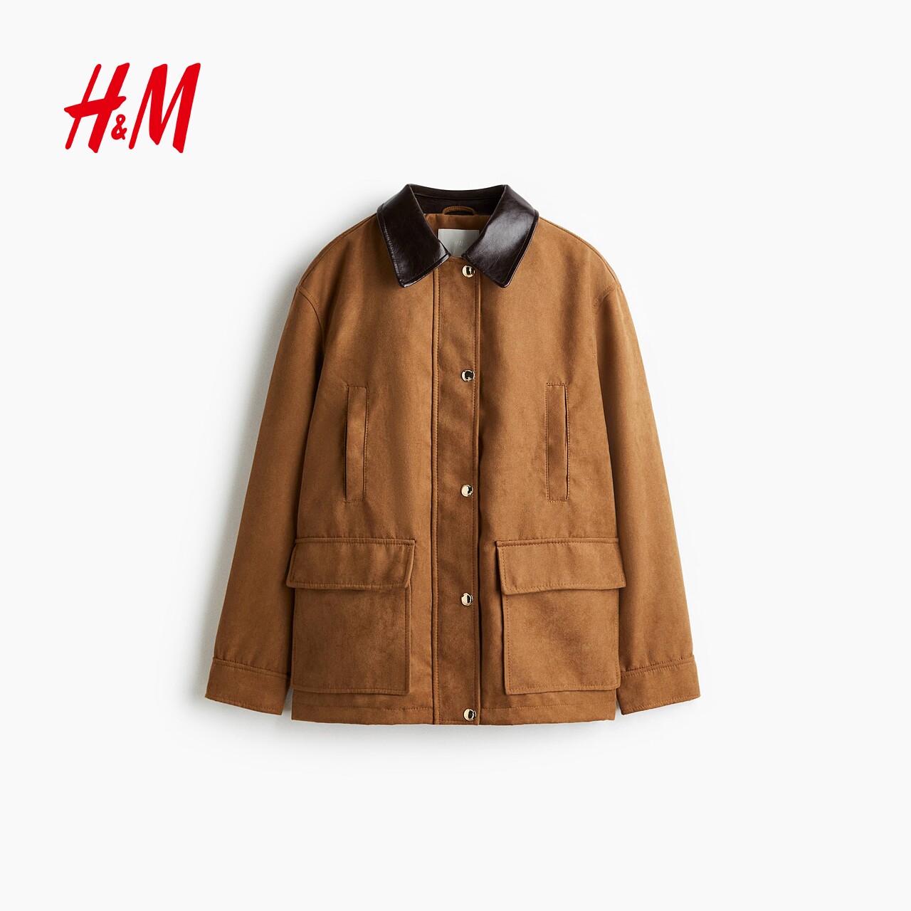 HM女装短外套2025冬季新款美拉德棕色巴恩风翻领美式夹克1311883