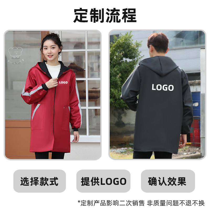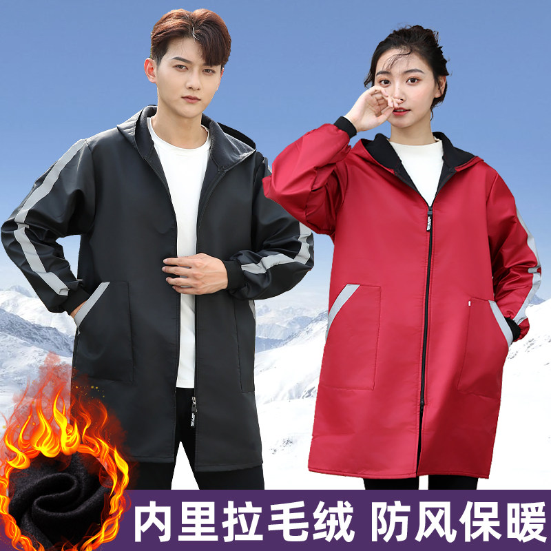 秋冬加绒款围裙连帽罩衣男女同款防污工作服红色防油外穿黑色