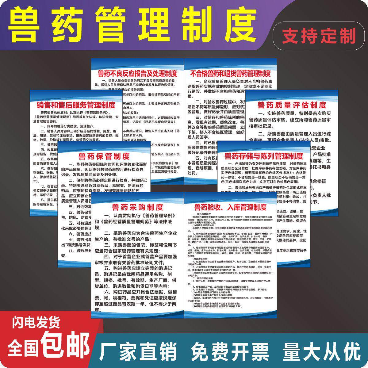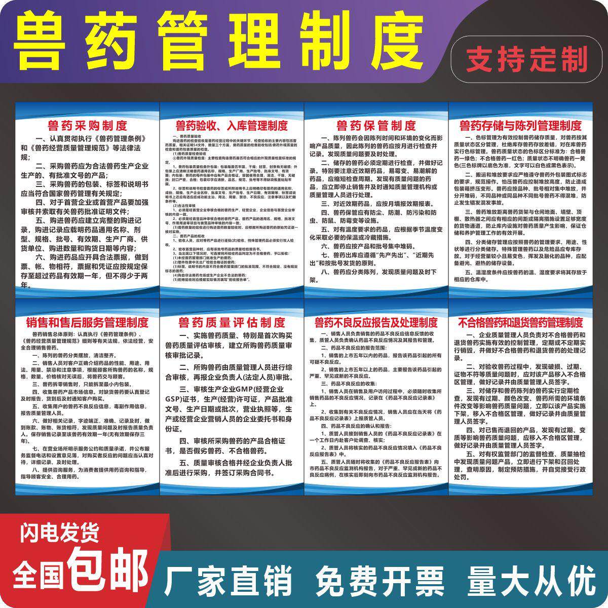 兽药经营质量规章制度牌环境卫生管理售后投诉可定做KT板PVC贴纸