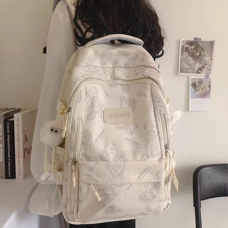 书包女生大学生高颜值初中生高中学生小熊小学生女孩双肩背包尼龙
