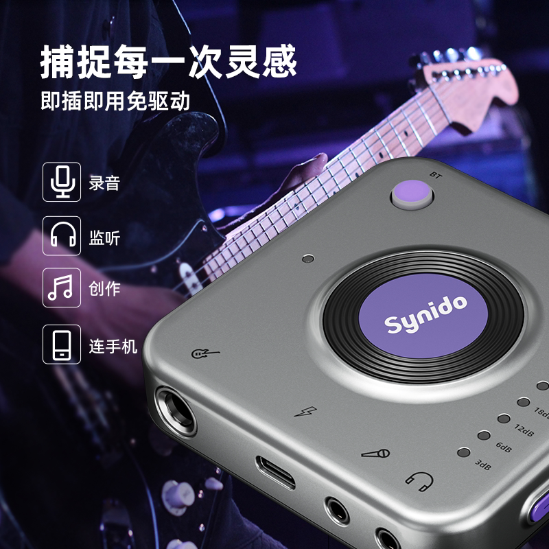 Synido森林岛小飞碟pro 乐器内录声卡手机直播电吉他箱钢琴贝斯架