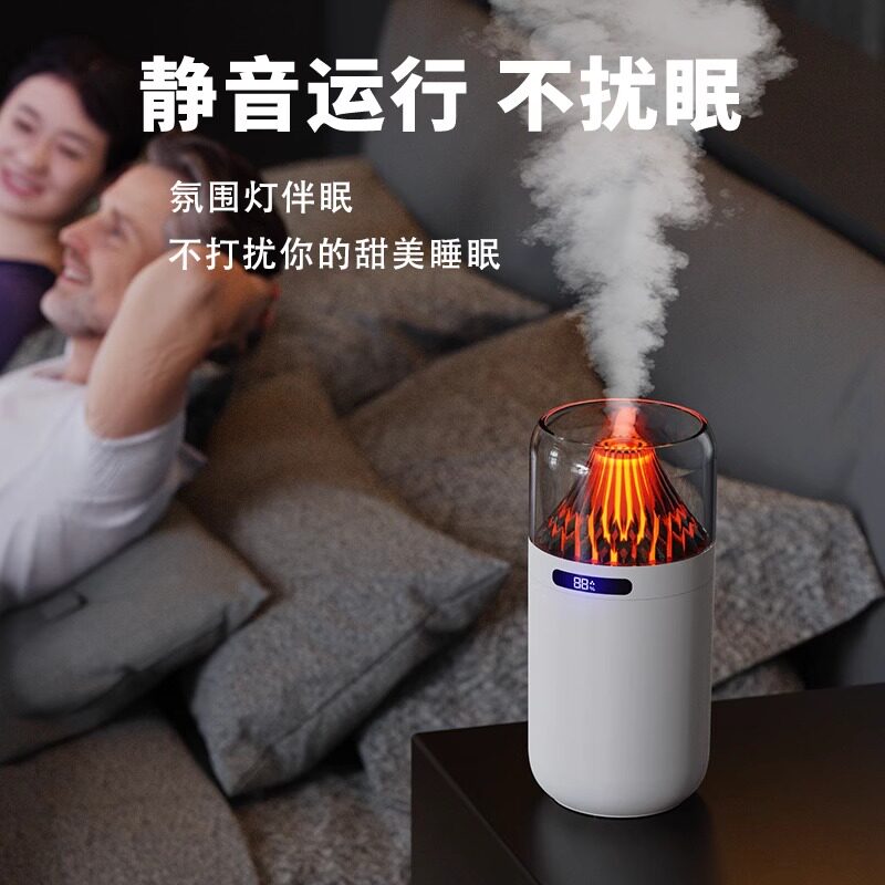 新款网红ins风火山静音车载加湿器家用空气净化七彩香薰雾化机USB充电办公室桌面喷香补水大雾量带氛围灯