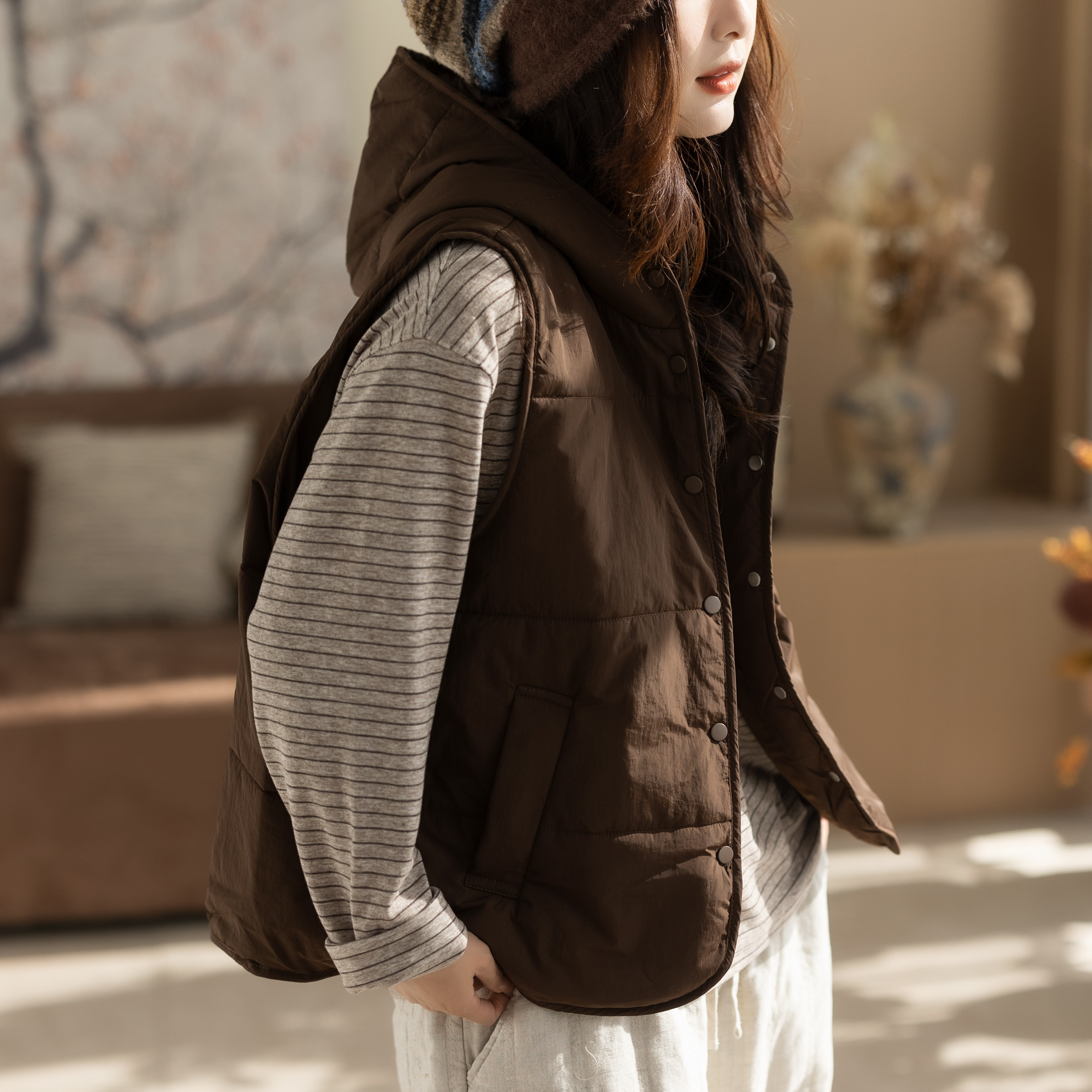 咖咪羽马甲女冬装新款女士帽子纯色宽松无袖坎肩女装上衣马夹外套