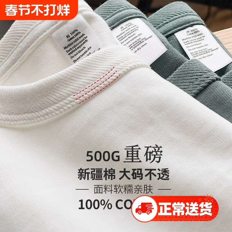 三本针 500g重磅纯棉短袖t恤男女日系厚实新疆棉胖子大码上衣半袖