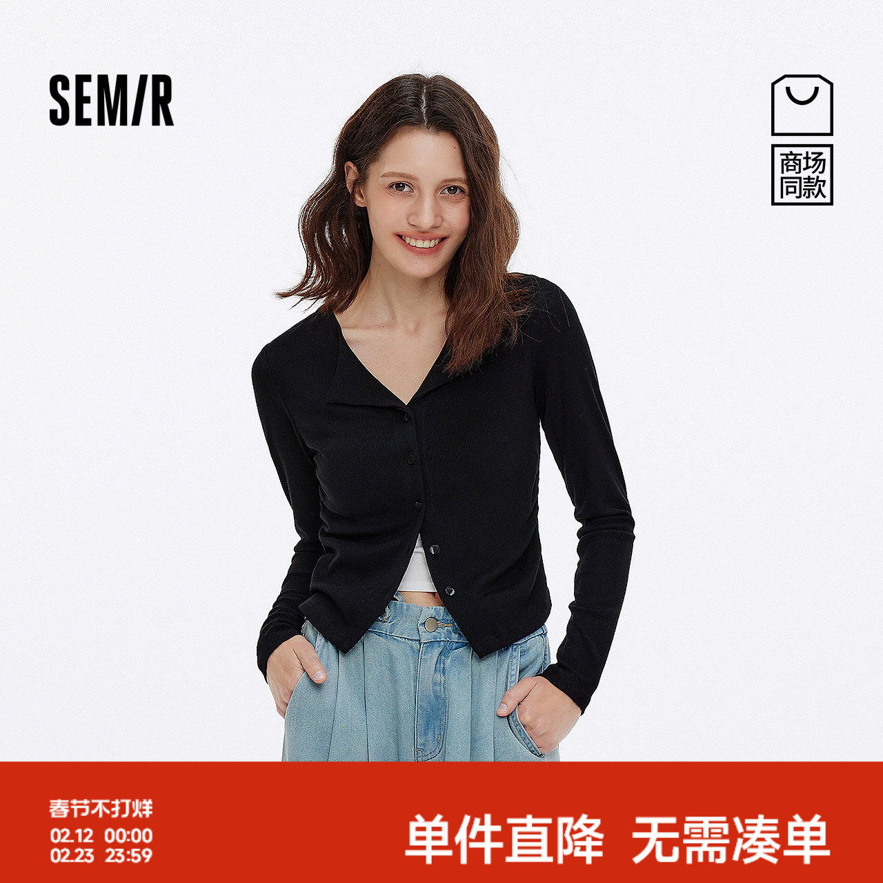 [商场同款]森马长袖T恤女短款显瘦小心机秋2025新款修身翻领开衫