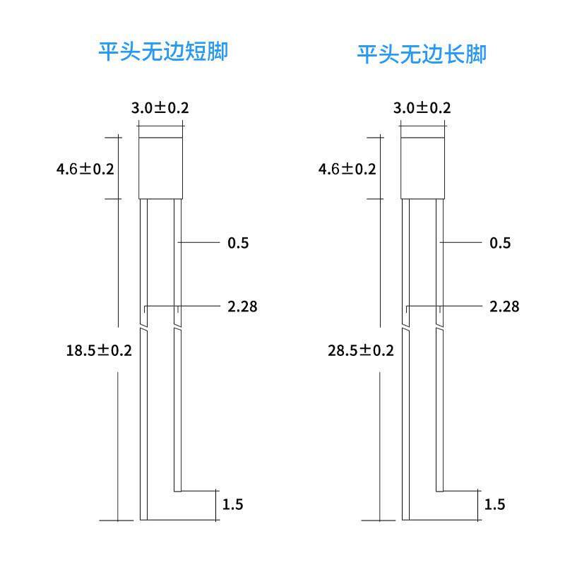 无边F3/3mm平头透明长脚无边 白红蓝绿黄 直插LED发光二极管灯珠