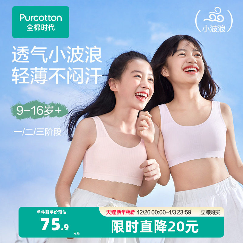 【轻薄透气款】全棉时代女童内衣少女发育期文胸一二三阶段小背心