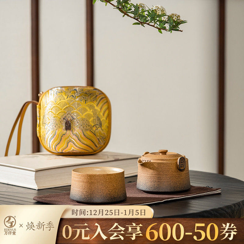 万仟堂陶瓷快客杯一壶一茶杯便携旅行便携包功夫茶具套装君子之交