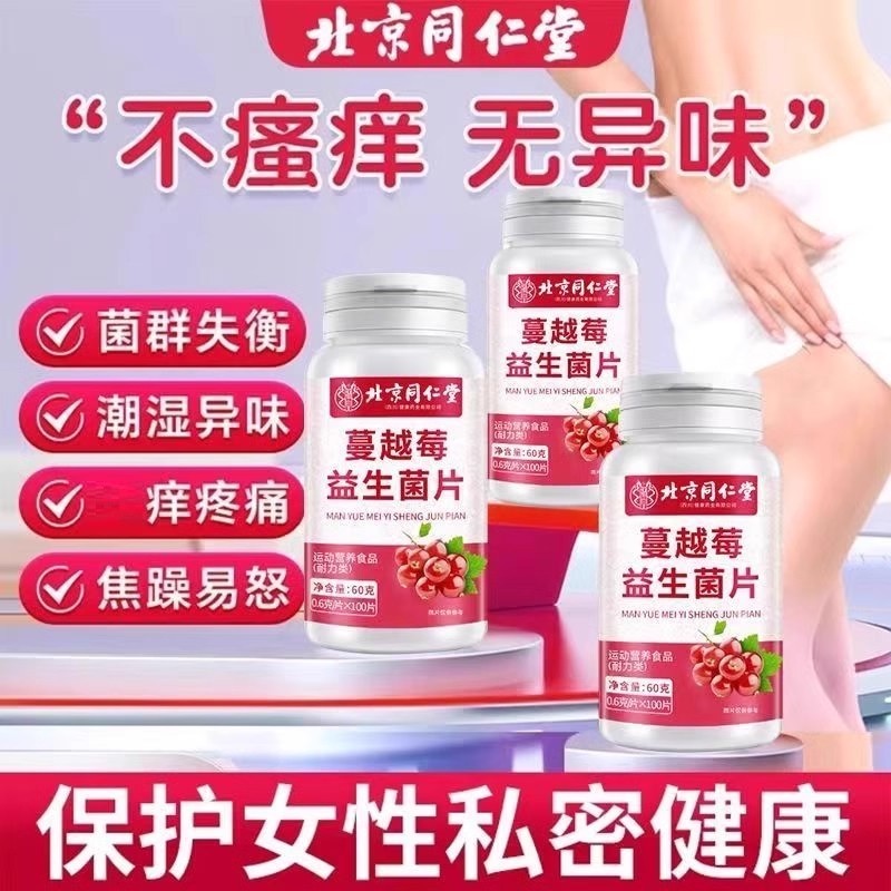 北京同仁堂蔓越莓益生菌片女性搭私密呵护活菌官方旗舰店正品代谢