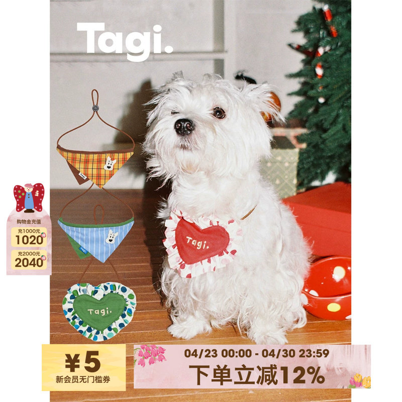 Tagi.怦怦爱心《哈哈》宠物口水巾爱心花边格纹狗猫围脖围兜