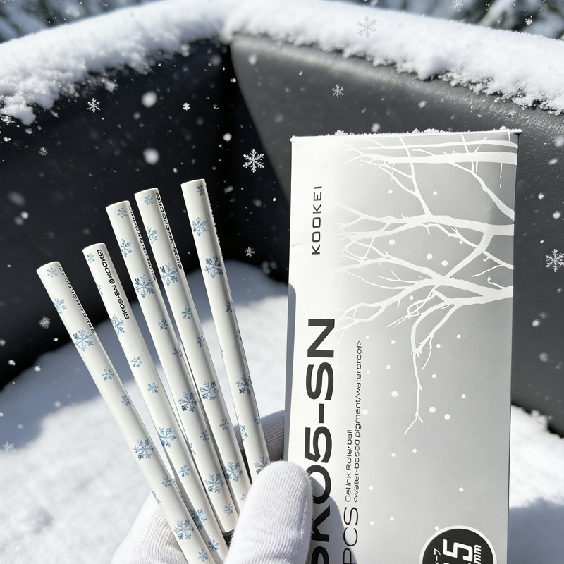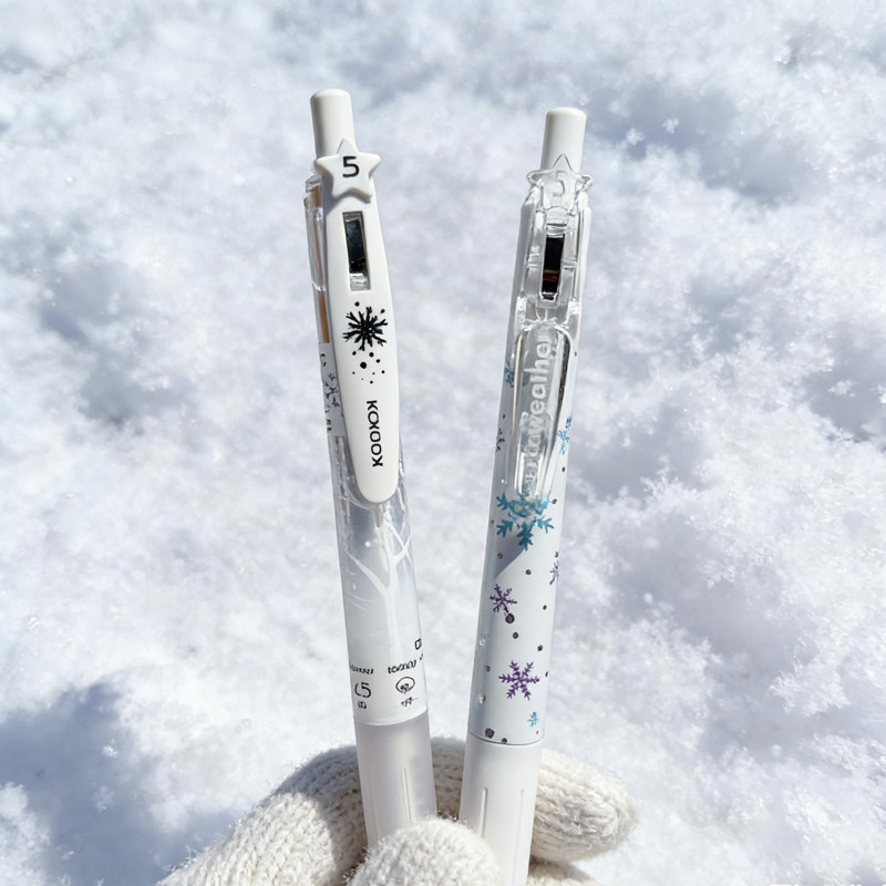 KOOKEI冬雪中性笔替芯纯白之雪季节气候精美图案按动式水笔0.5mm学生考试刷题速干黑笔天气限量款大容量笔芯