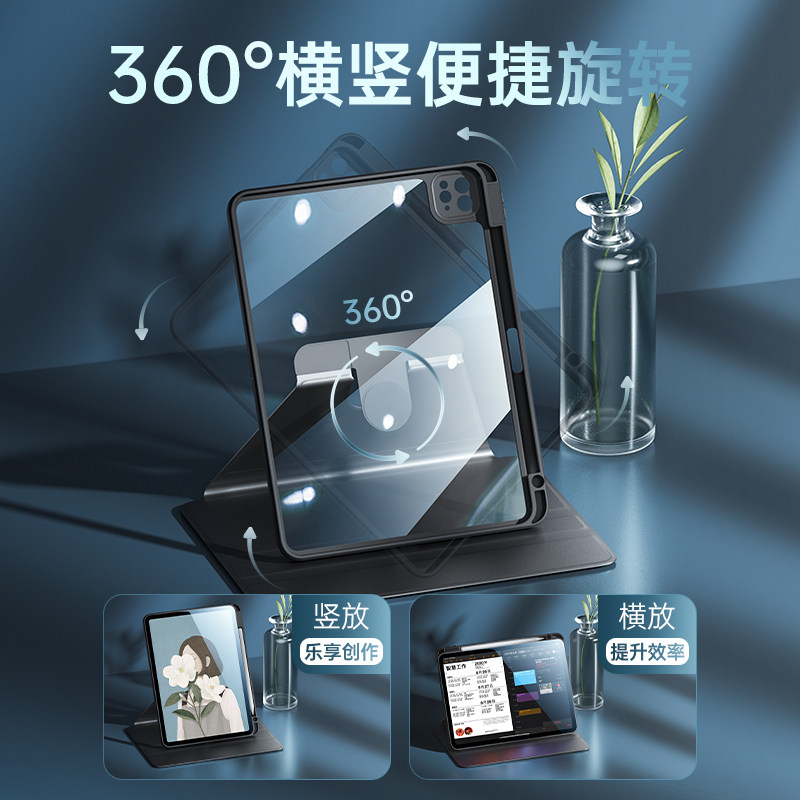 奢姿适用于iPad新款360旋转Pro防弯10代保护壳7防摔Air411寸平板10.2套12.9笔槽2英寸9壳5全包mini6磁吸3