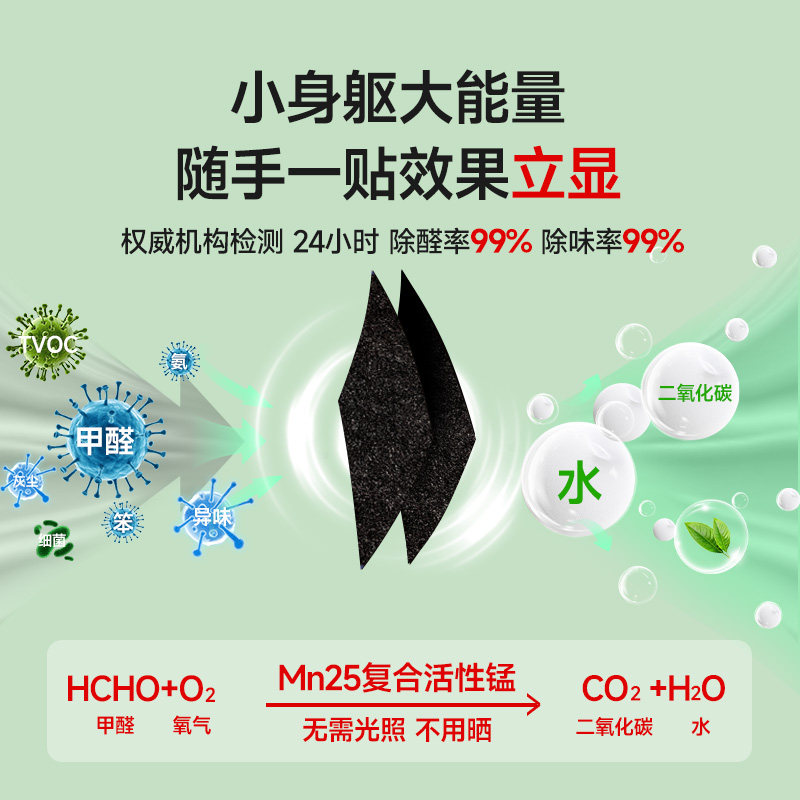 绿之源除甲醛活性锰分解片贴片Mn25毡新房新车衣柜除醛锰片清除剂