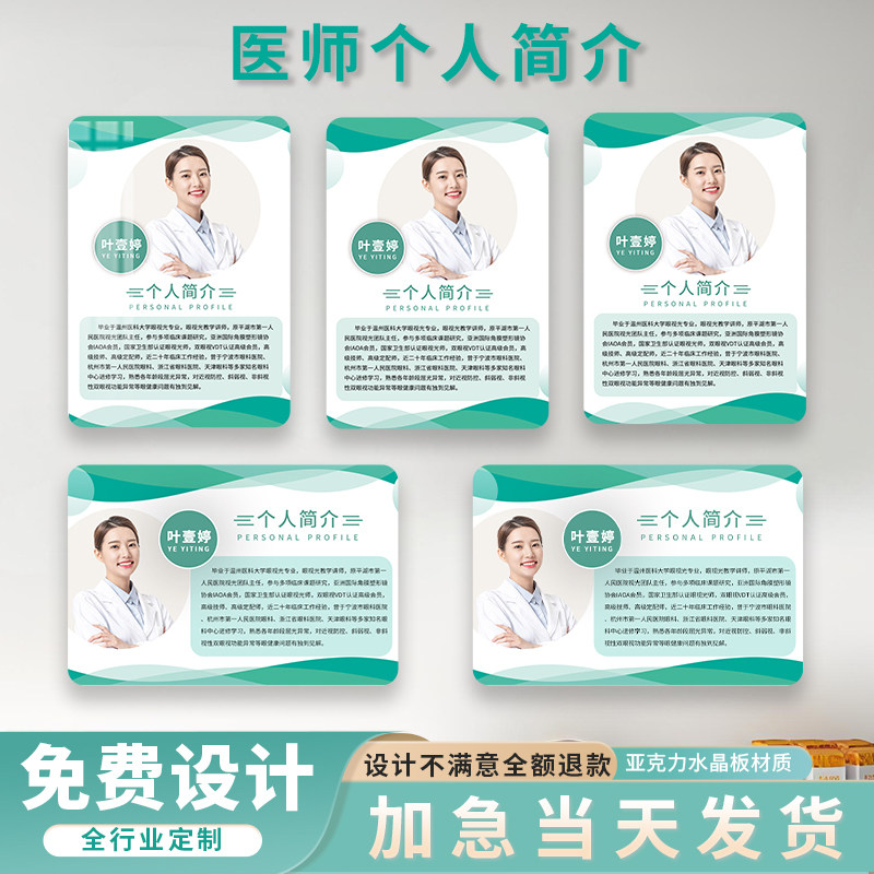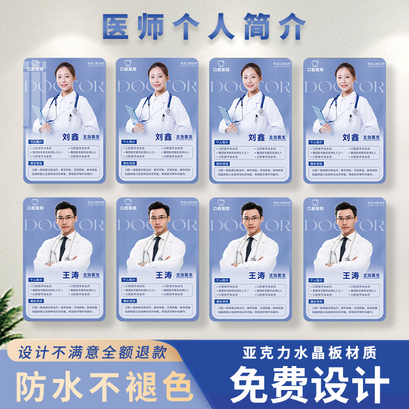 亚克力医生个人简介形象广告展示牌定制培训讲师履历简历展板挂墙培训机构企业公司台牌桌牌标识牌高档广告牌
