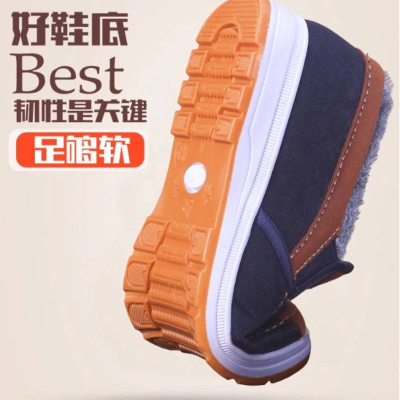 老北京布鞋男工作棉鞋秋冬防滑保暖一脚蹬休闲帆布板鞋加绒牛筋底