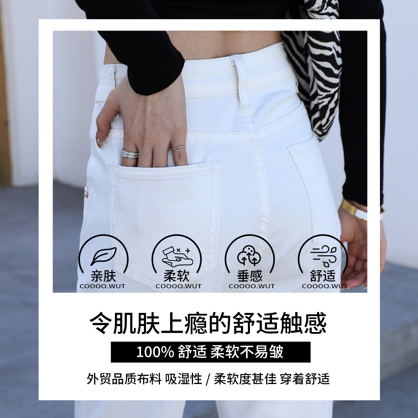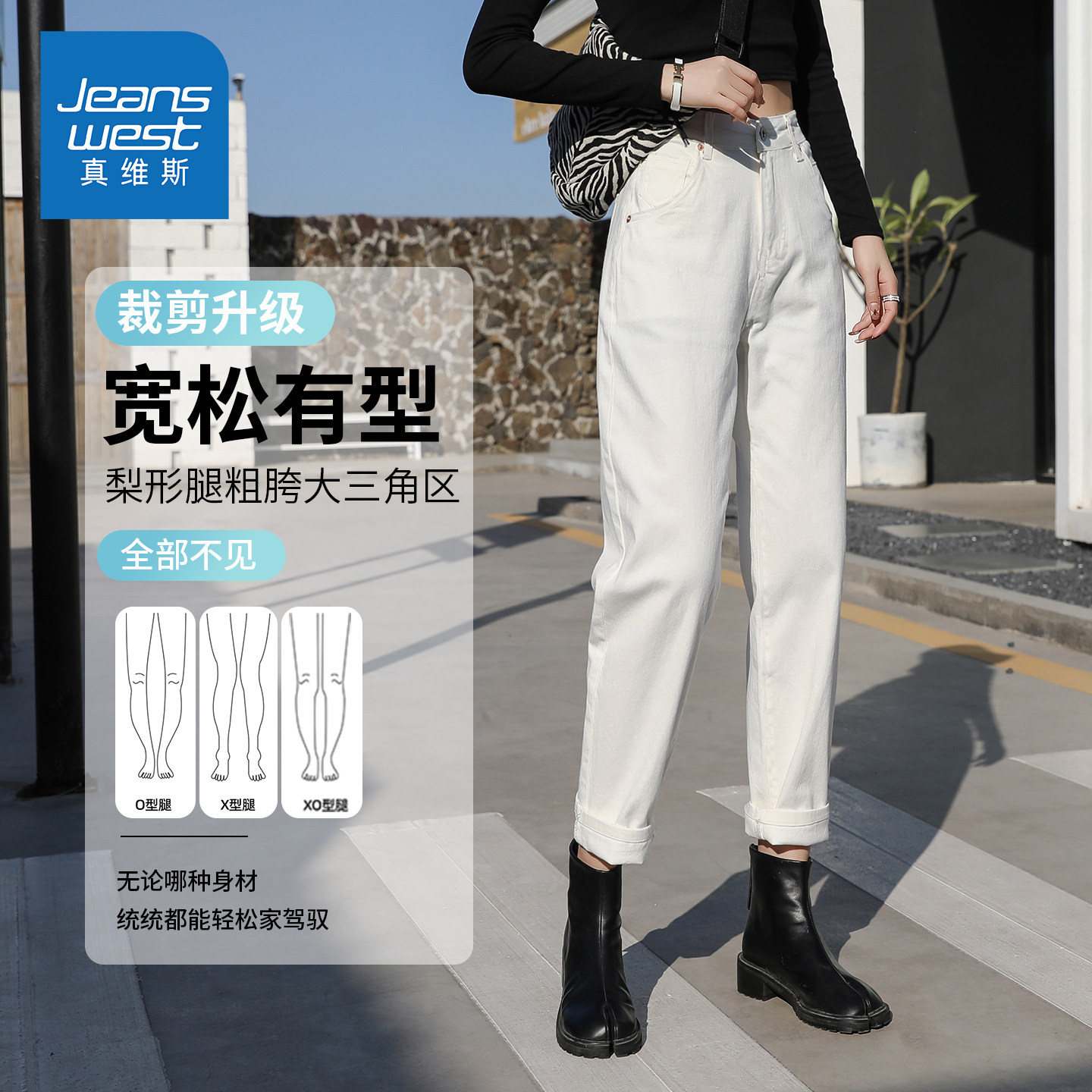 KZH真维斯小个子牛仔裤女秋季新款修身小脚直筒裤白色高腰老爹裤