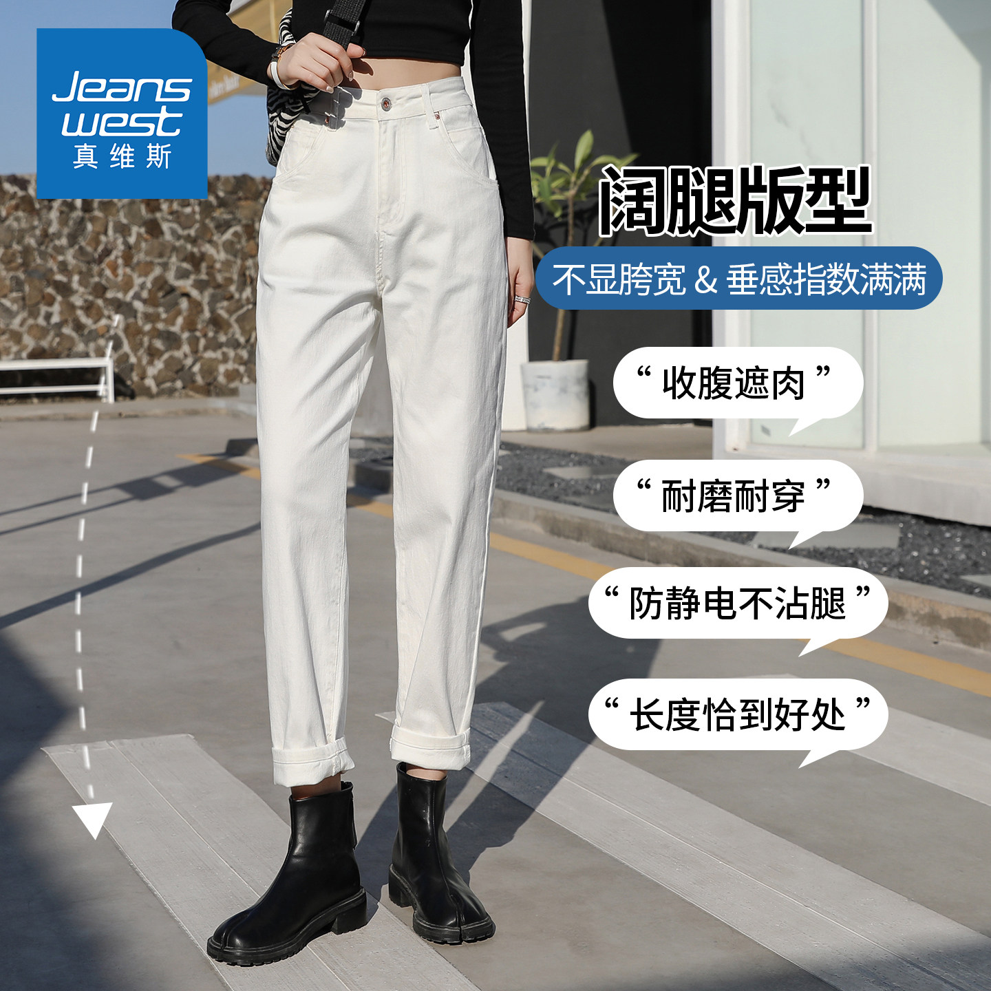 森柔牛仔|森马阔腿牛仔裤女2025秋冬白色牛仔裤简约女士高腰裤子