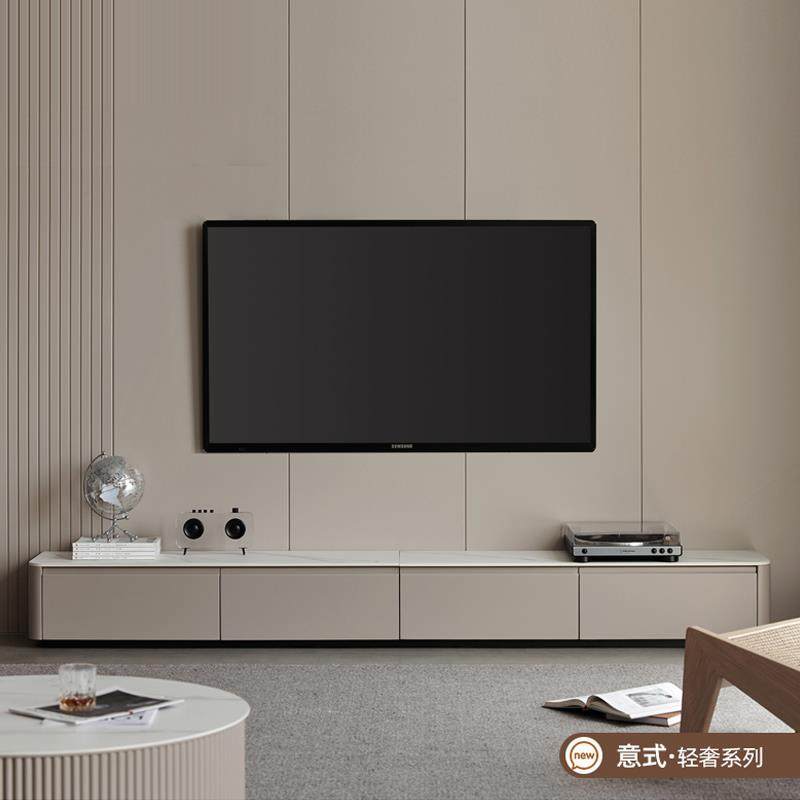 麦比梵简约现代意式轻奢岩板电视柜整装落地客厅小户型地台柜网红定制摆件饰品床笠拉车