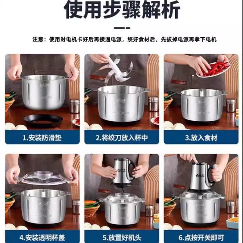 5L6叶刀大容量电动绞肉机家用不锈钢多功能搅馅搅辣椒搅蒜和面机