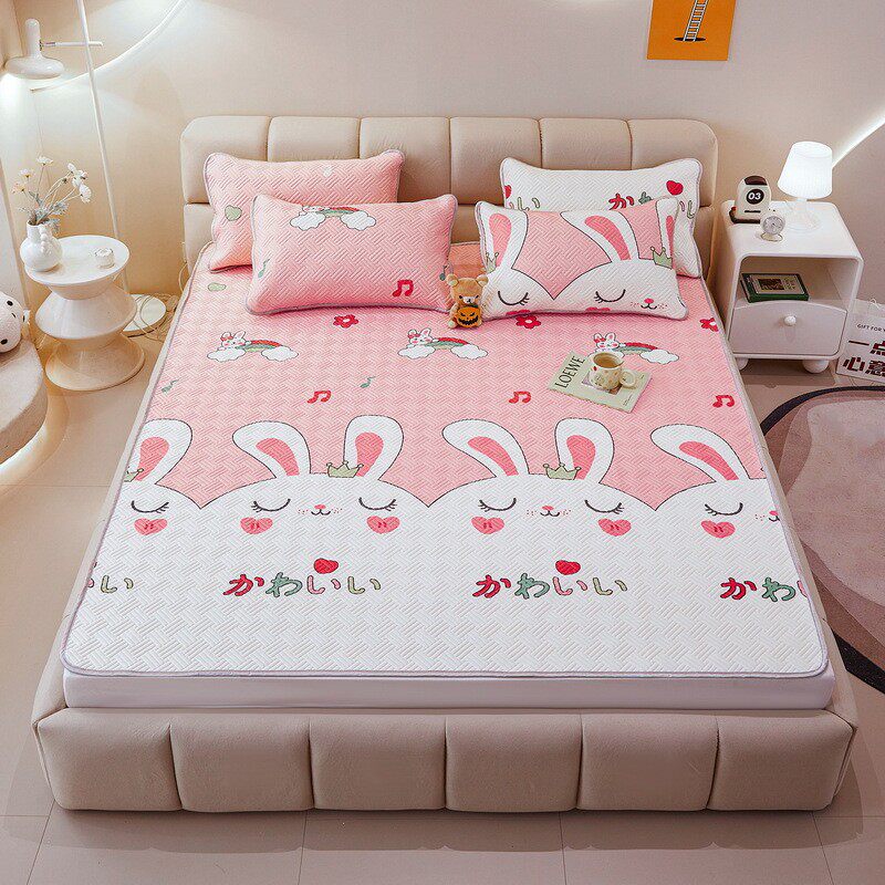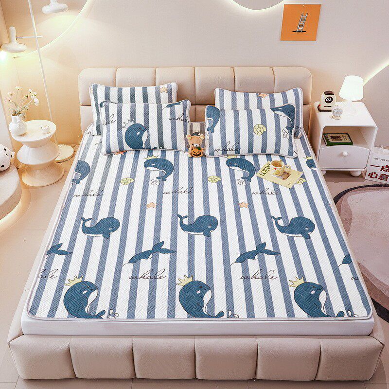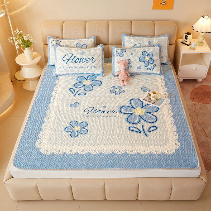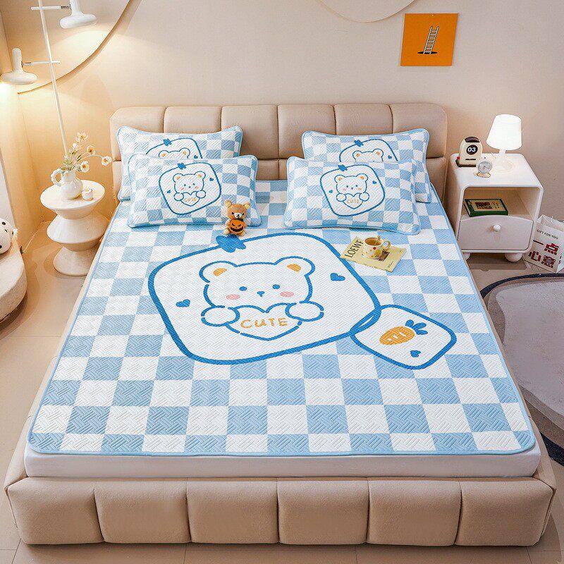 卡通薄荷凉感天丝ins印花空调软席三件套折叠冰丝凉席子批发
