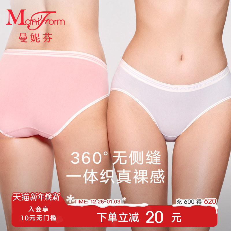 2条曼妮芬舒适女士无痕内裤一体织纯裸感纯棉抗菌内裆无侧缝底裤