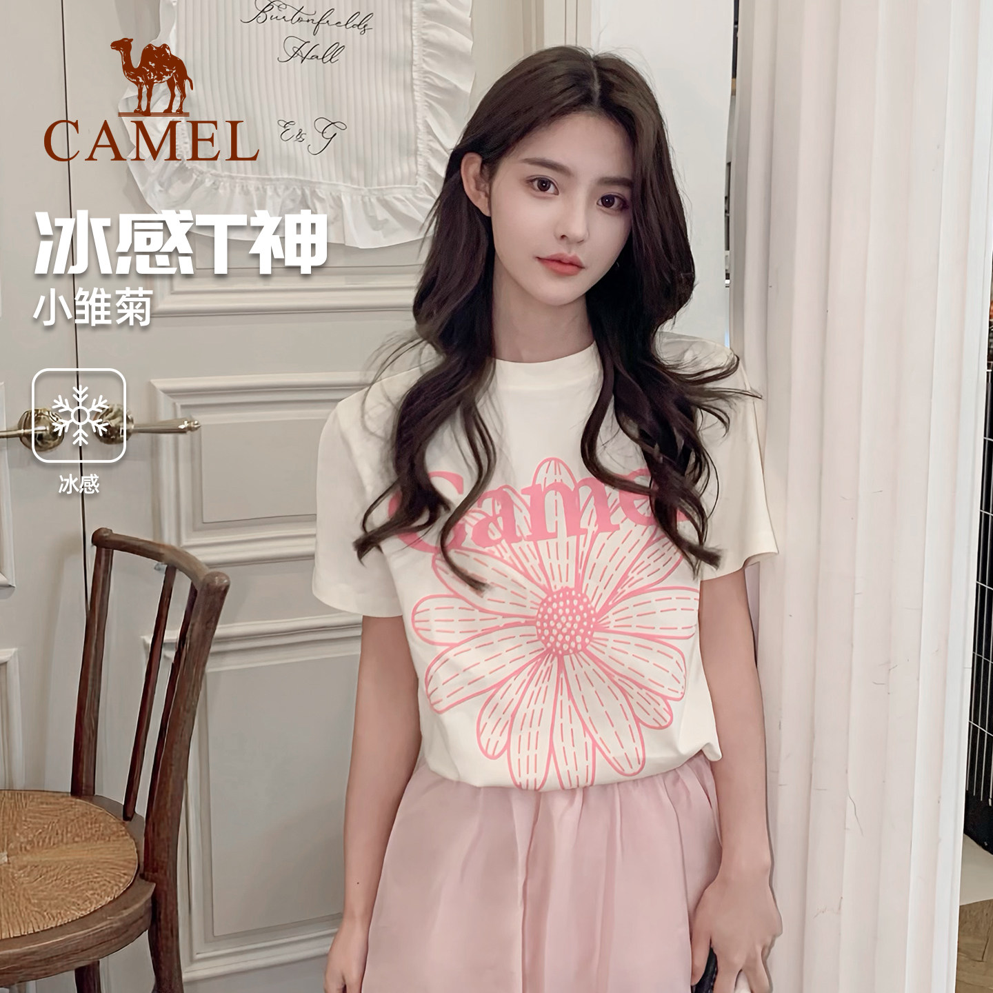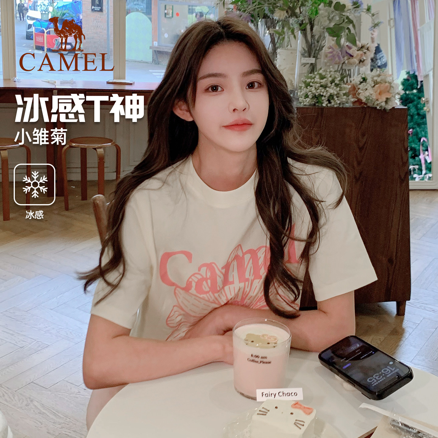 冰感T神骆驼短袖T恤半袖正肩小个子韩系小雏菊夏季新款棉感上衣女