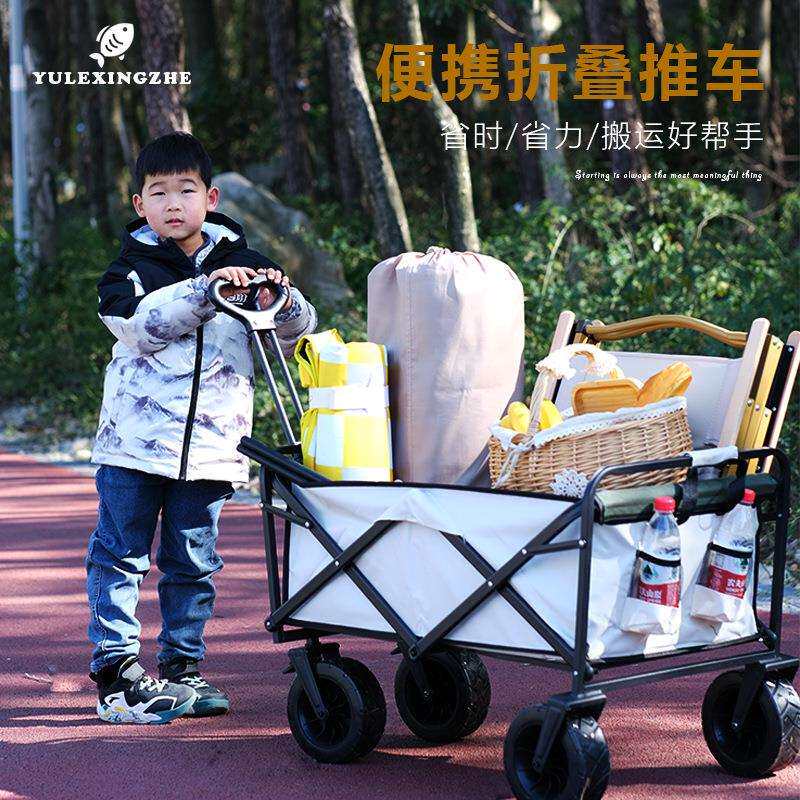 露营车野餐手推车小拉车营地车拖车户外旅行野营可折叠儿童手拉车