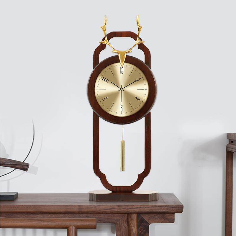 新中式轻奢鹿头座钟台钟客厅家用时尚时钟摆件中国风创意台式坐钟