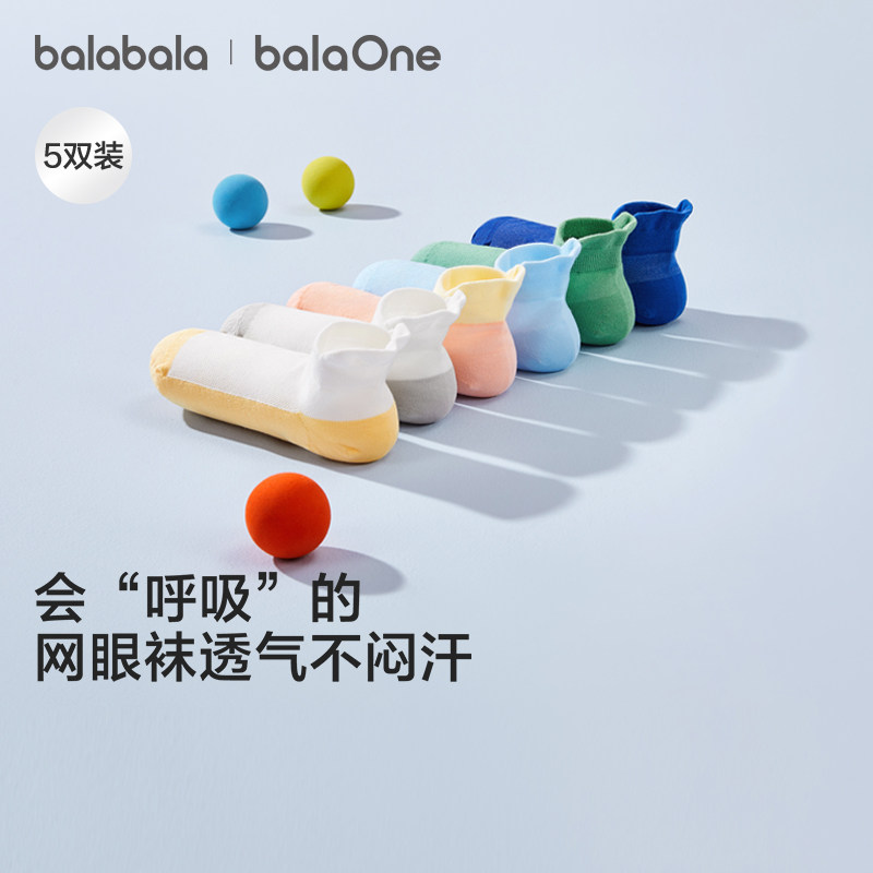 巴拉巴拉儿童袜子夏季网眼儿童运动风袜透气男女童小童大童五双装