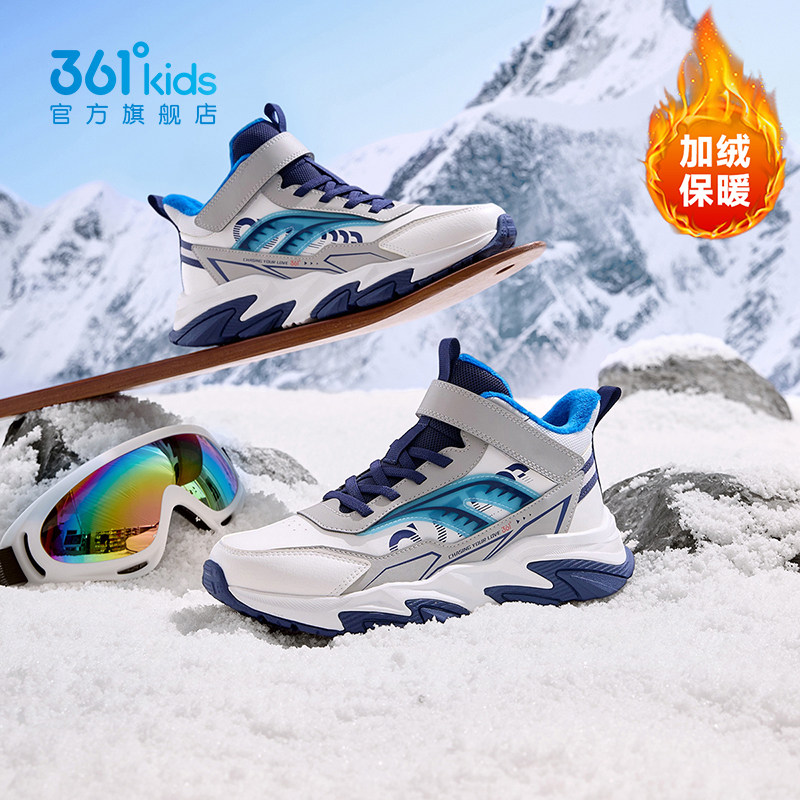 特步童鞋高帮儿童棉鞋男童加绒冬季加厚二棉保暖大棉休闲运动鞋子