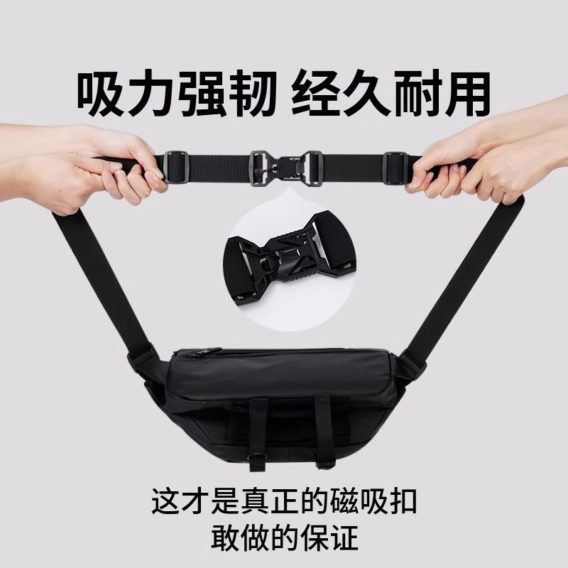 2025新款男士斜挎包防水运动单肩包休闲大容量胸包磁吸扣通勤时尚