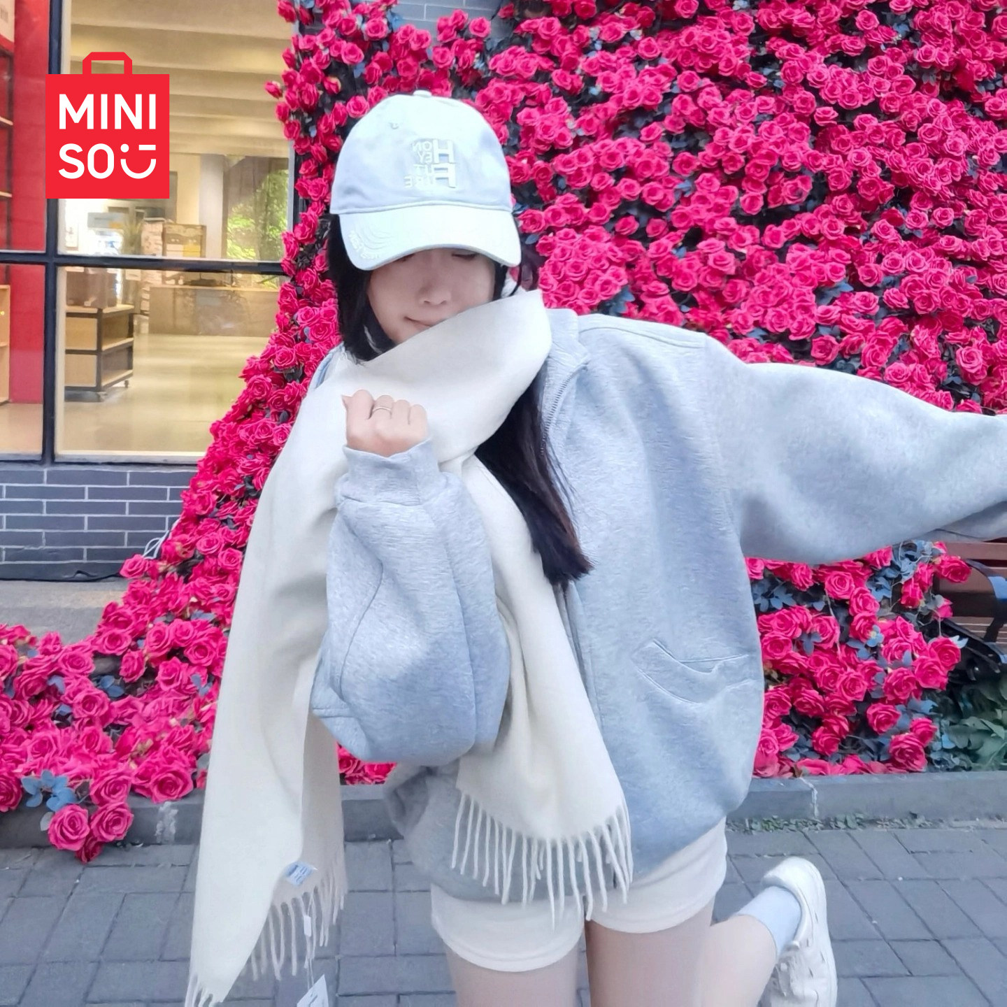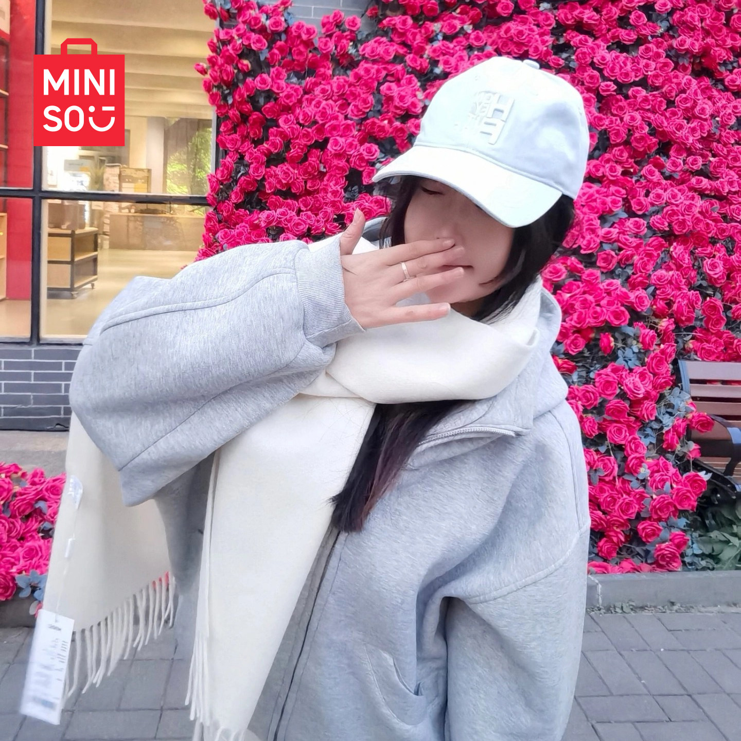 MINISO名创优品纯色围巾100%纯羊毛女冬保暖披肩围脖礼盒2025新款