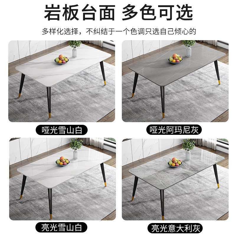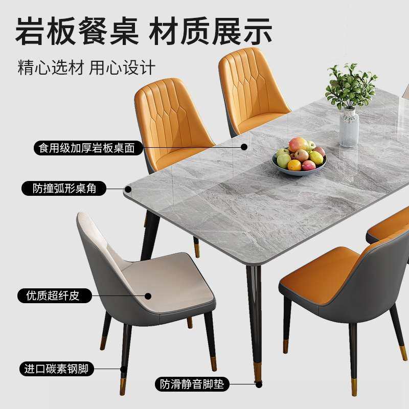 岩板餐桌家用小户型轻奢简约长方形2024新款大理石饭桌子椅子组合