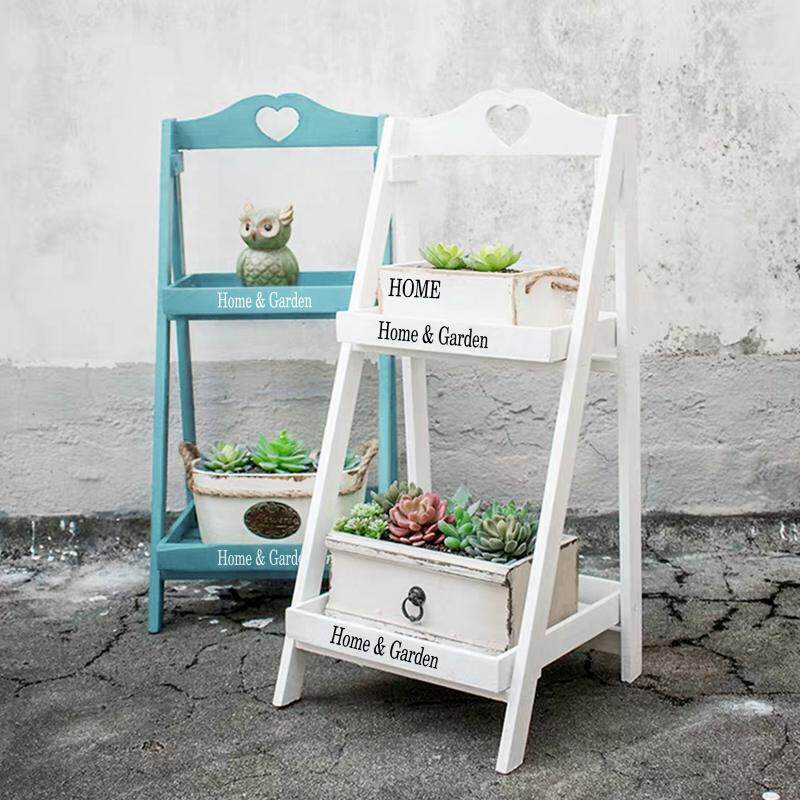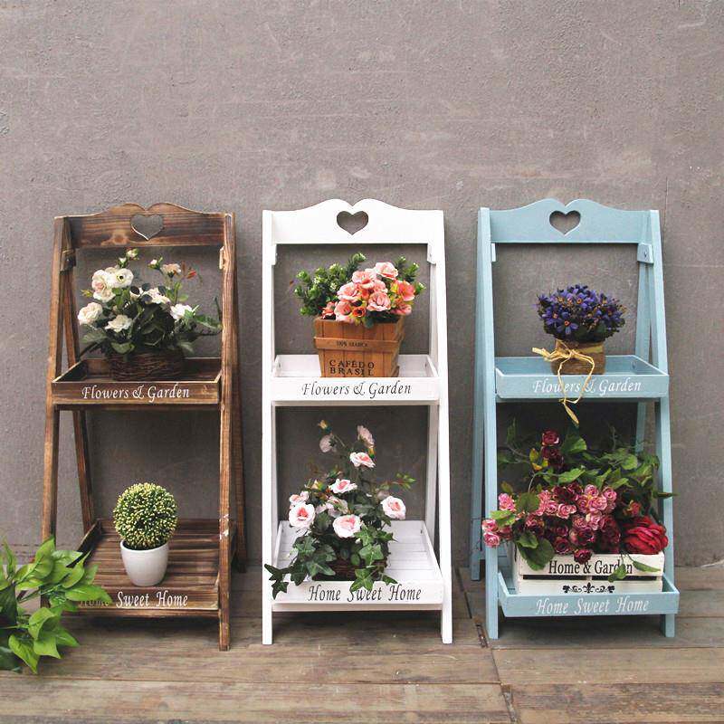 美式乡村复古实木花架几阶梯落地式多层方形置物架子阳台花台摆件