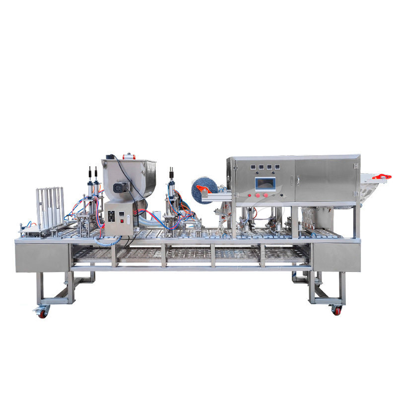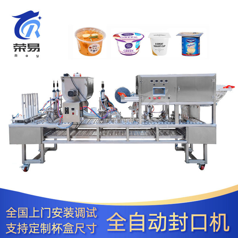 全自动流水线式杯装酸奶牛奶封杯机PP塑料杯装速溶饮料灌装封口机