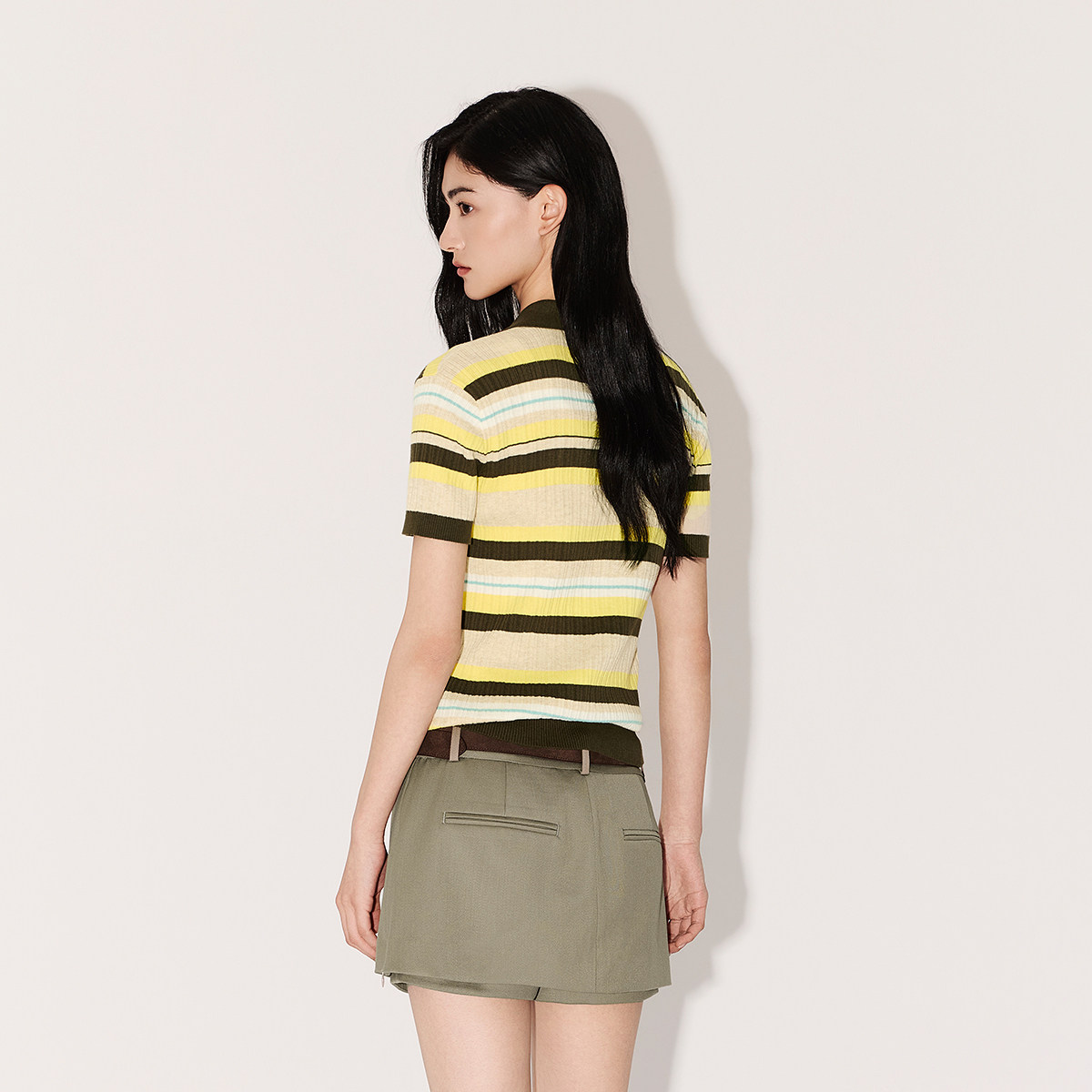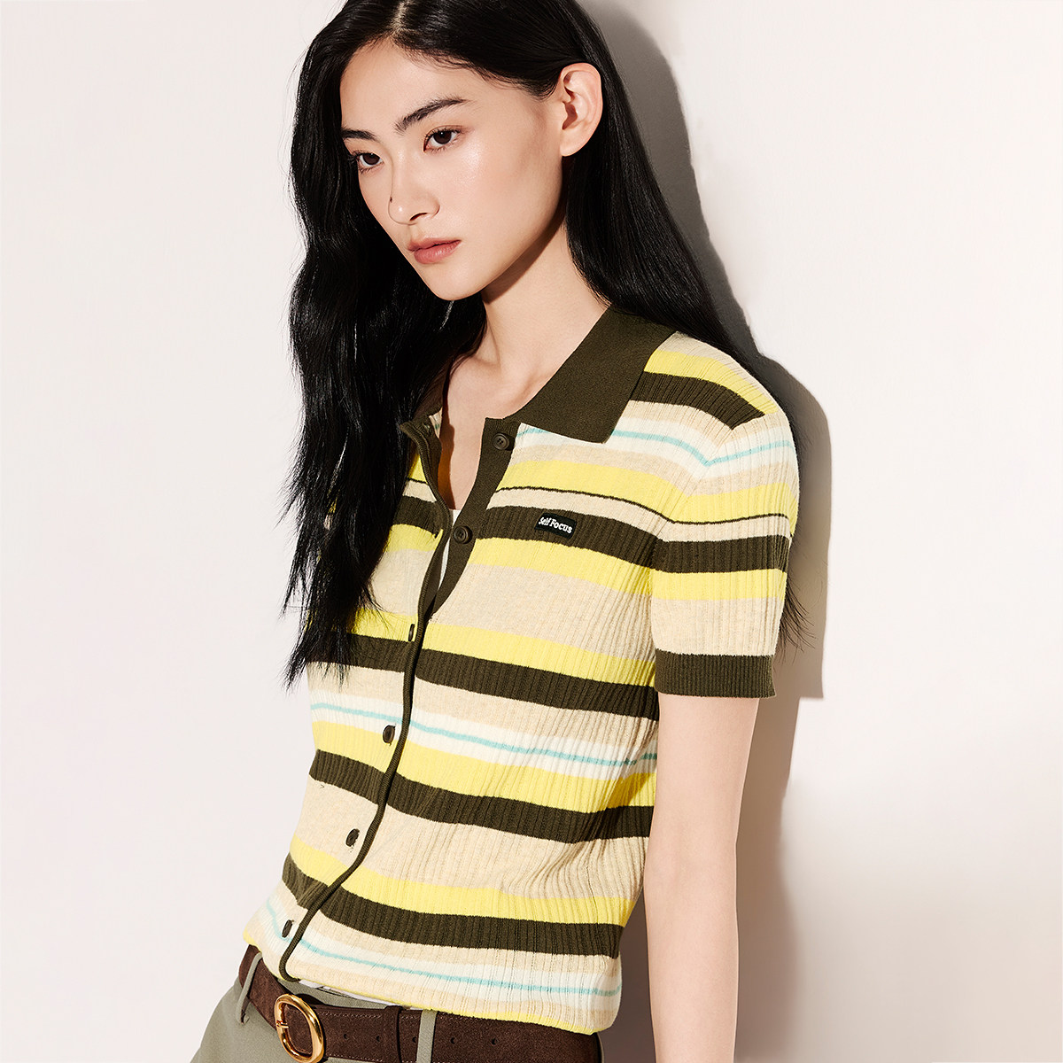 【新品】OCHIRLY欧时力 针织外套2026春夏polo领条纹短袖空调衫