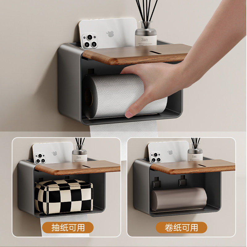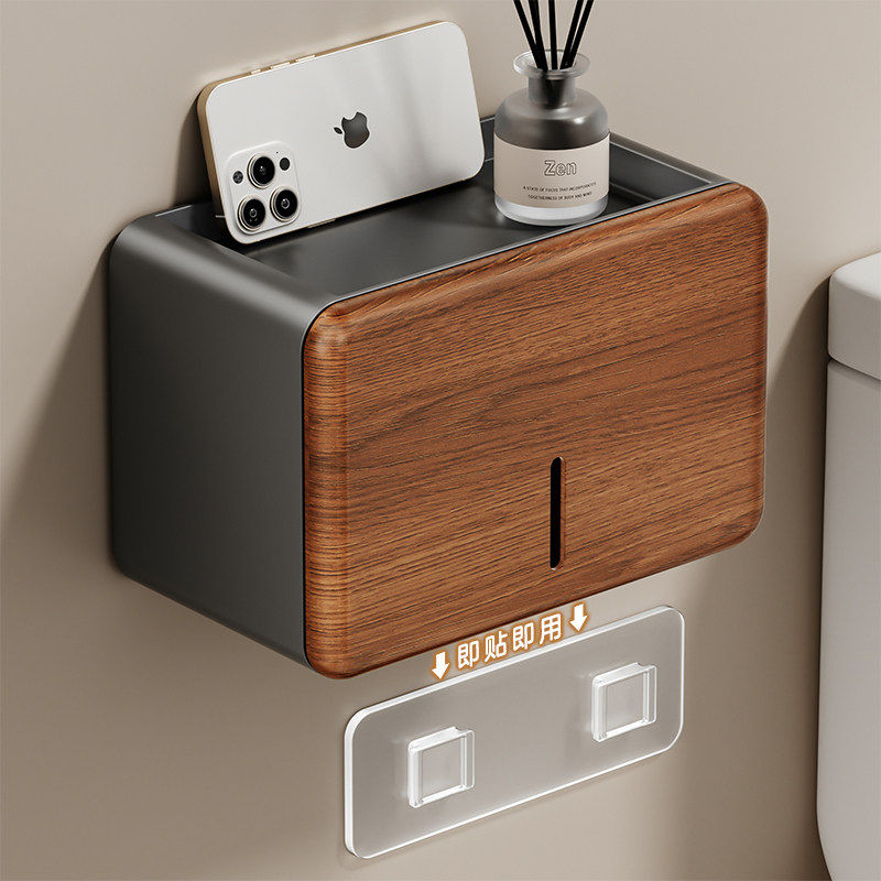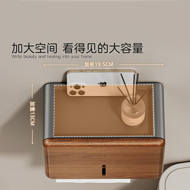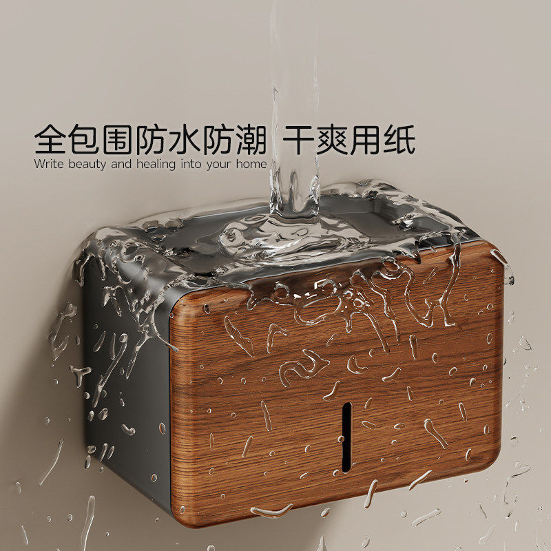 胡桃木卫生间厕纸盒浴室厕所纸巾盒免打孔防水置物架手纸盒壁挂